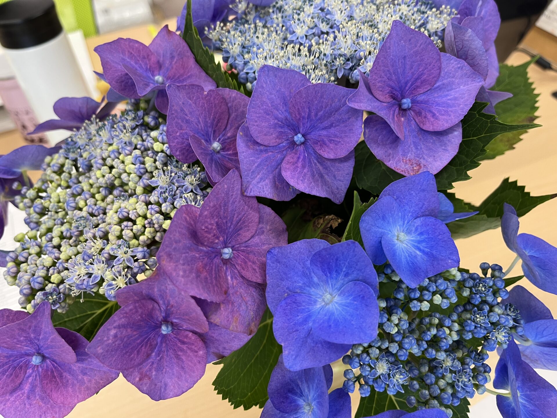 花の効果もさることながら、何よりY先生の心遣いも嬉しく、曇り空だった職員の心も「晴れっ!」になった、梅雨のある日の出来事でした。