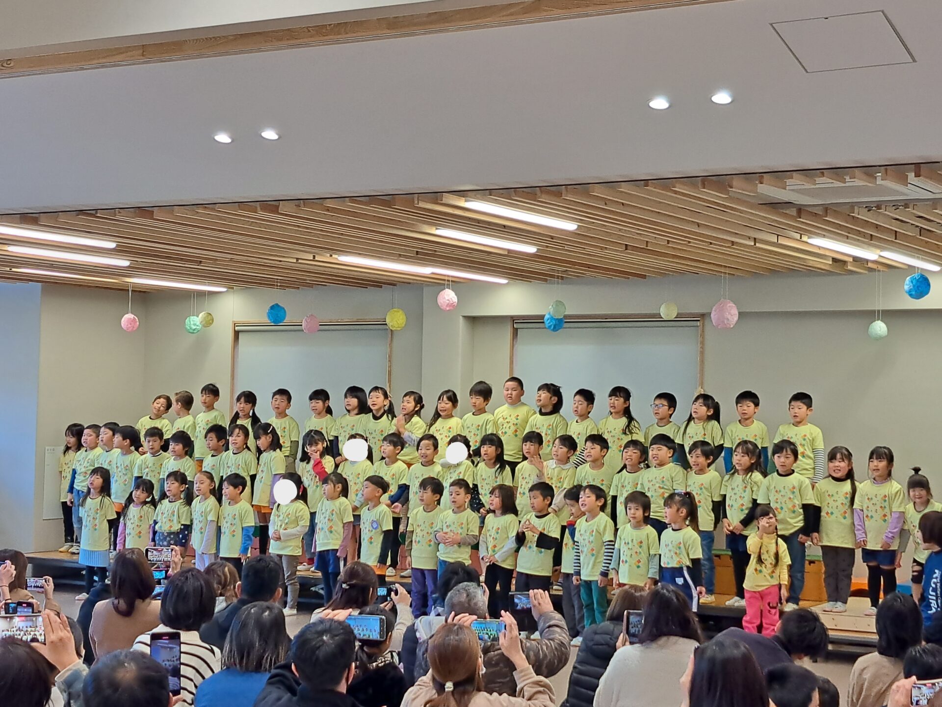 アンコールに1番驚いたのは保育者かもしれません・・・。何も言わず急に始まった伴奏にも関わらず元気に「あしたははれる」を歌い切った子どもたちに「すごい!くじらチームさん、最高!」と拍手を送ります♪