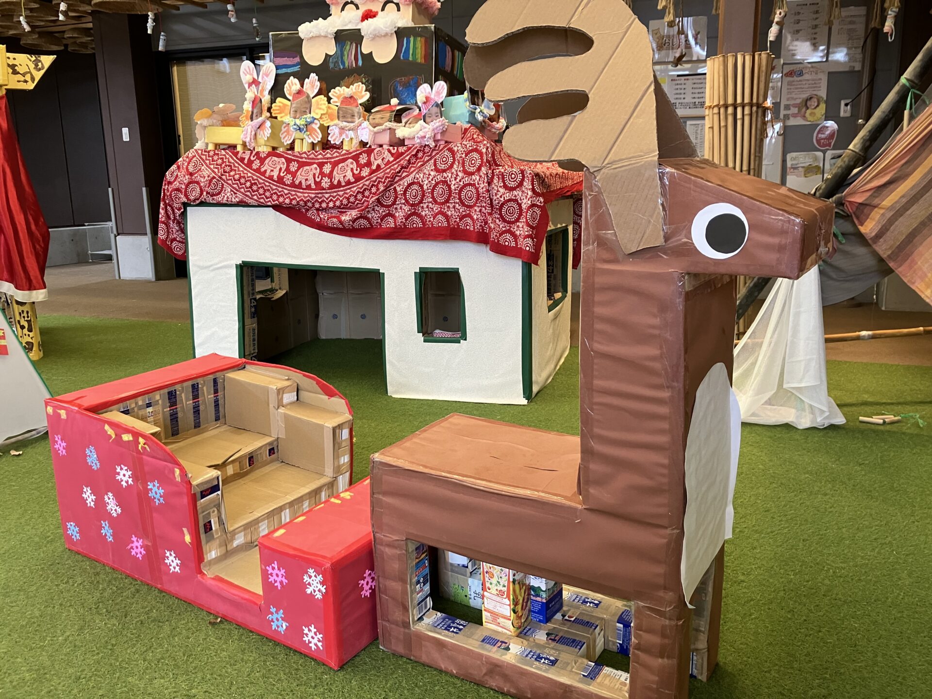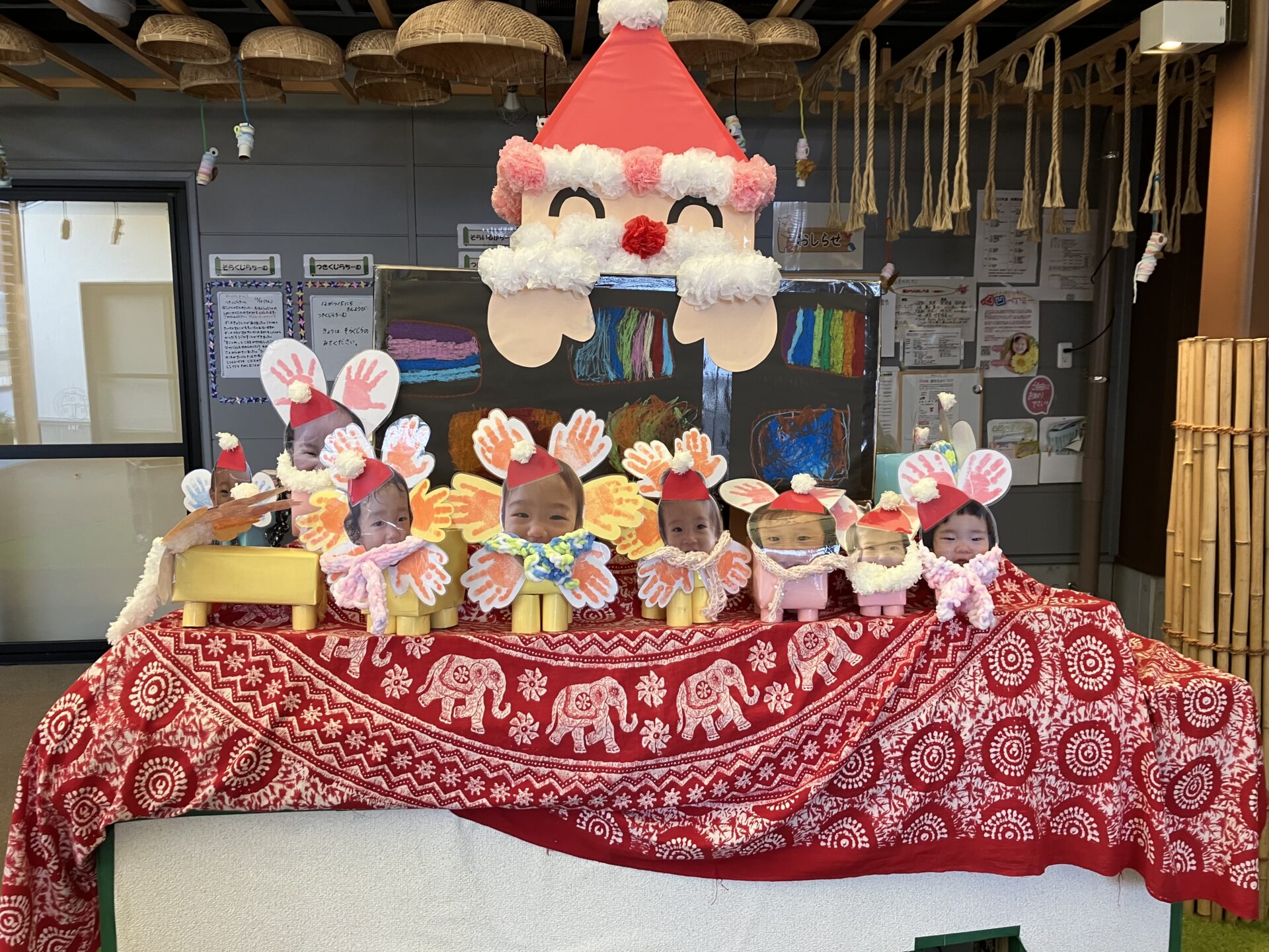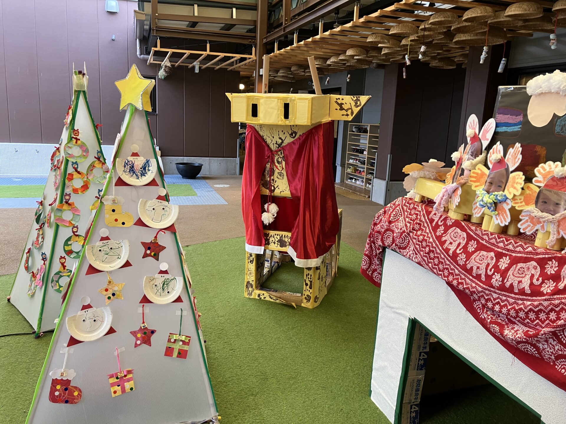 伴谷くじらこども園の、エントランスもすっかりクリスマスモード!