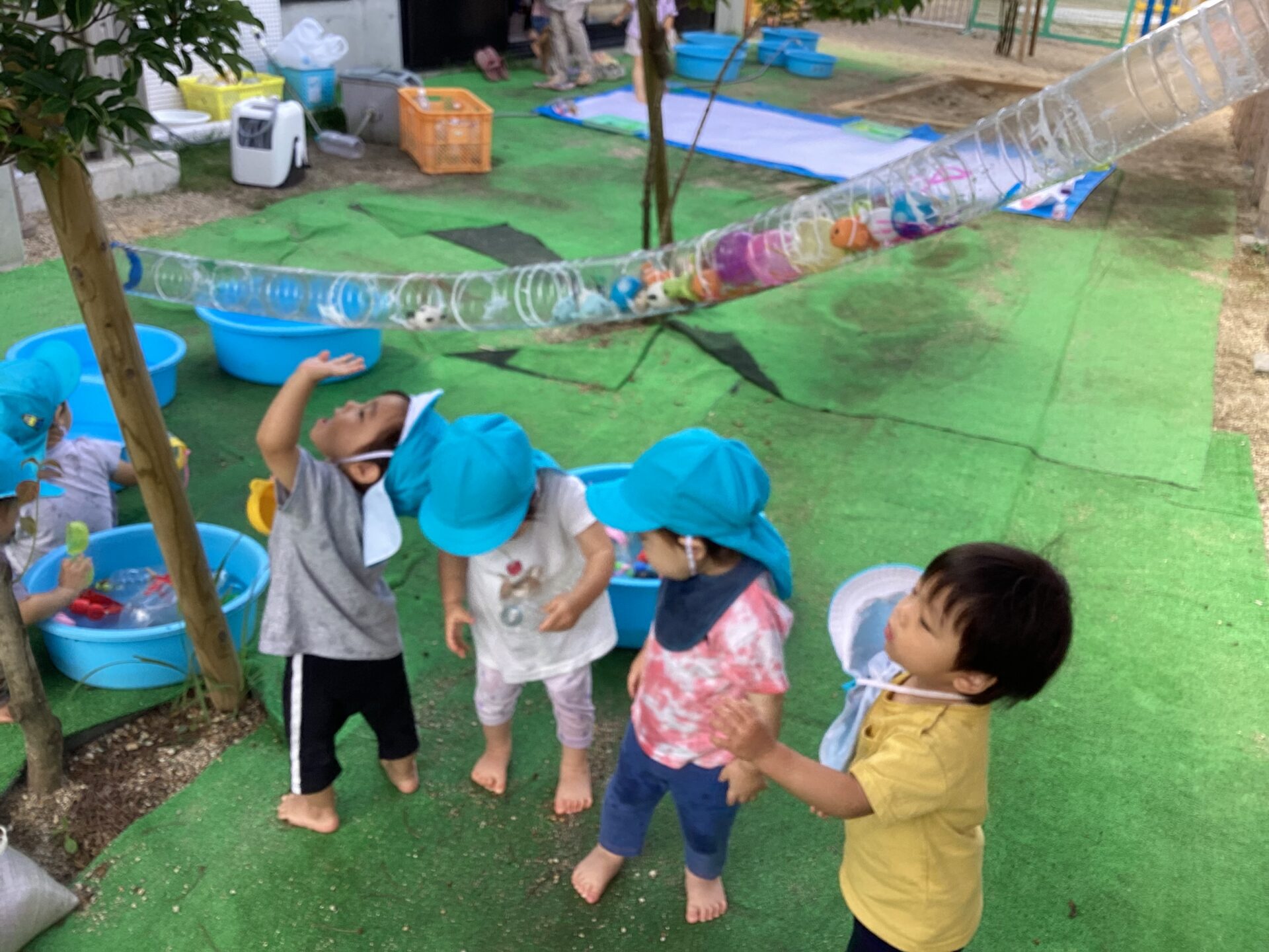 次の日・・・水遊びで外へ出ると「お~!」と、子どもたちが指をさして喜んでいました。