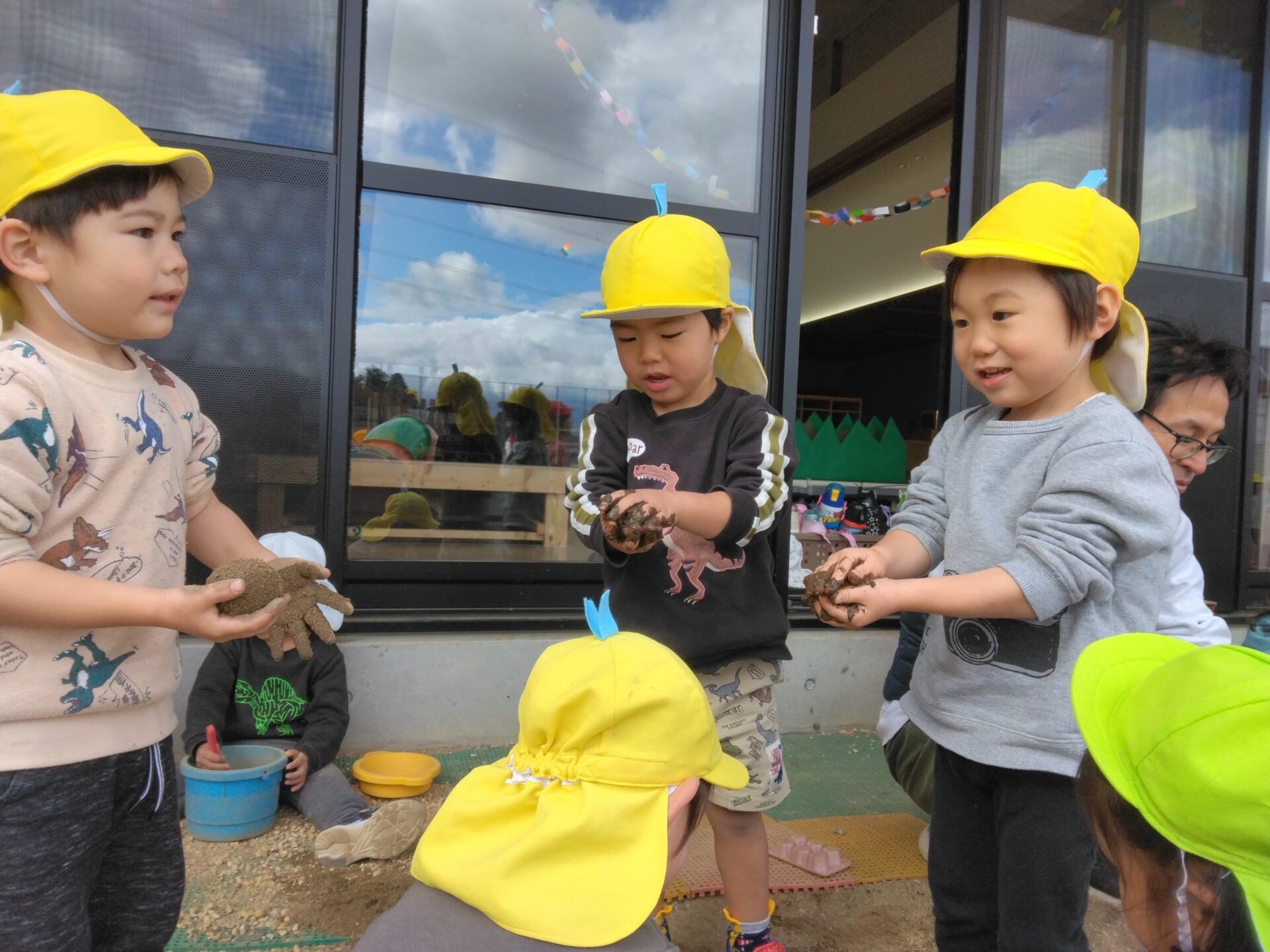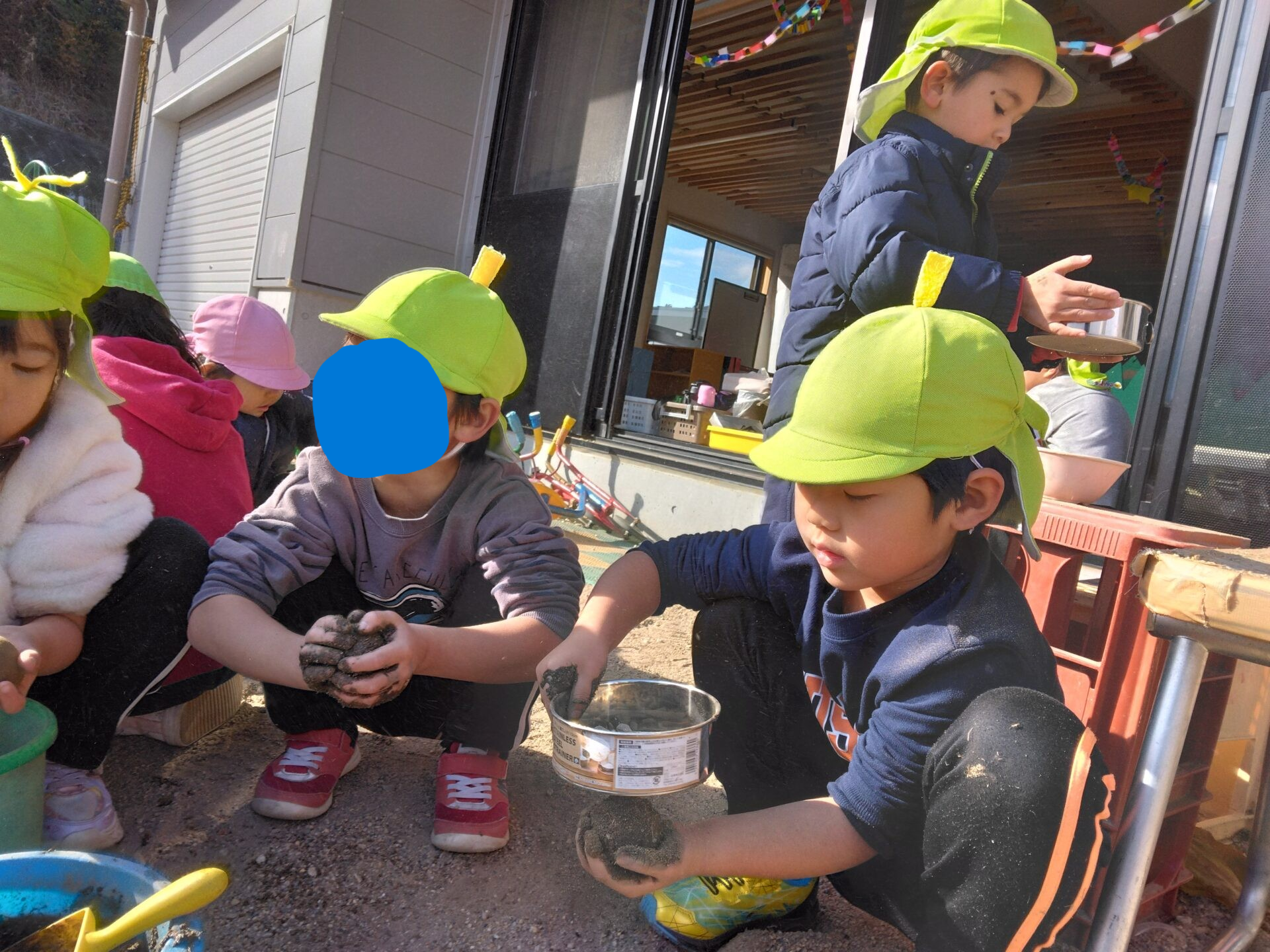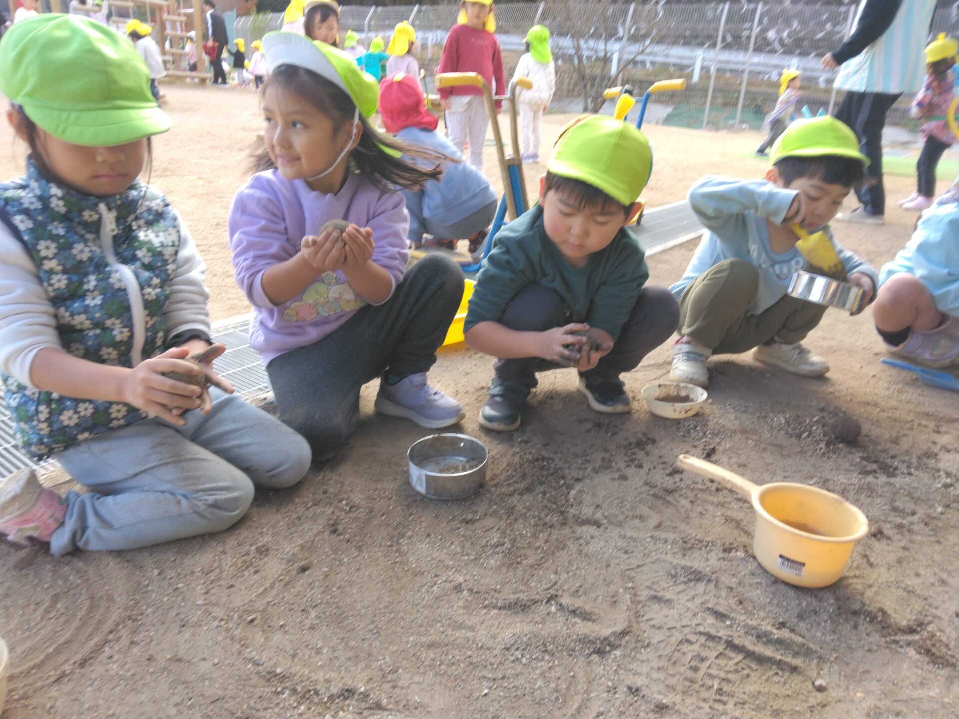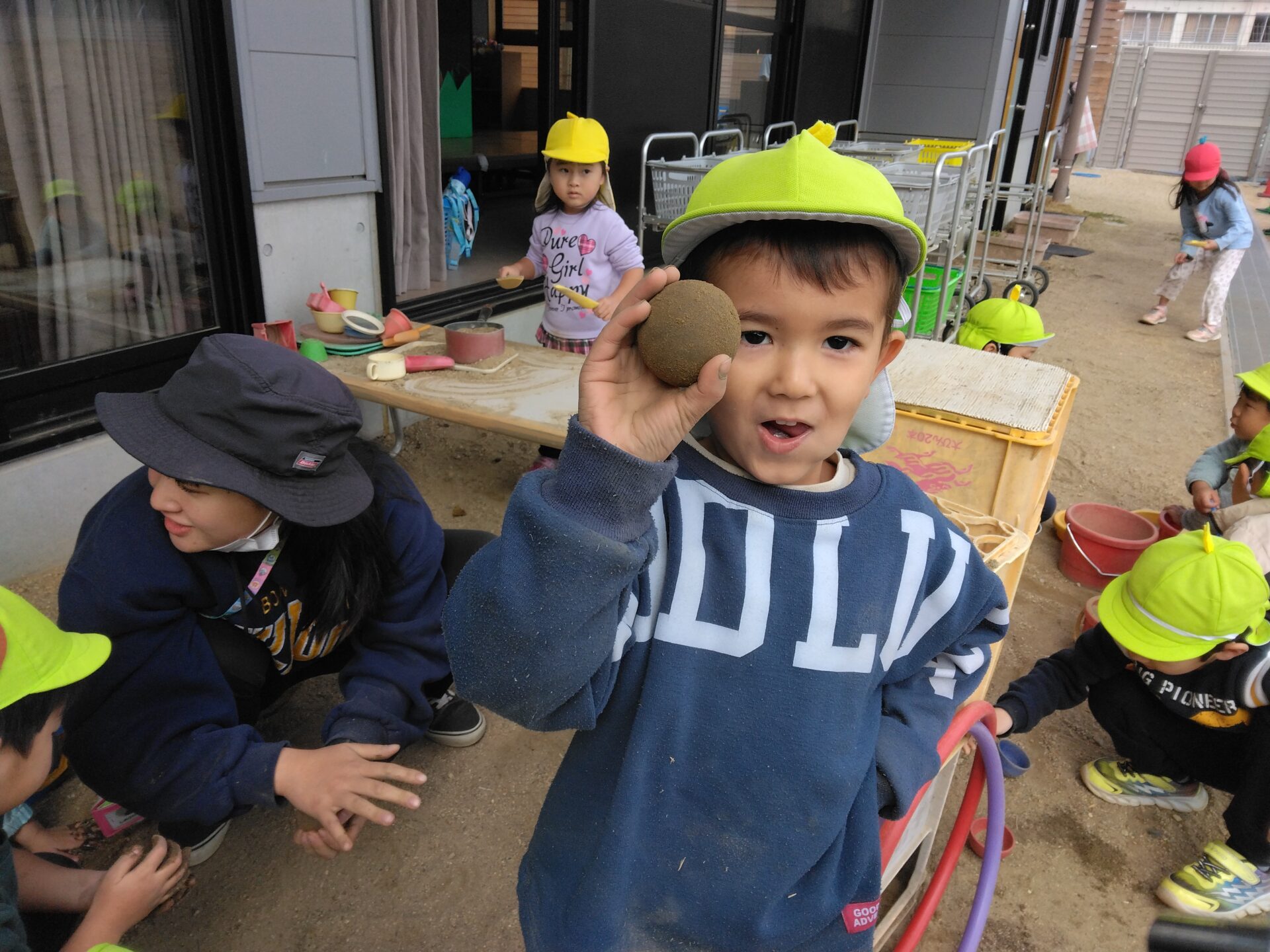 3歳児かぜチームの友だちも、泥団子づくりに挑戦!