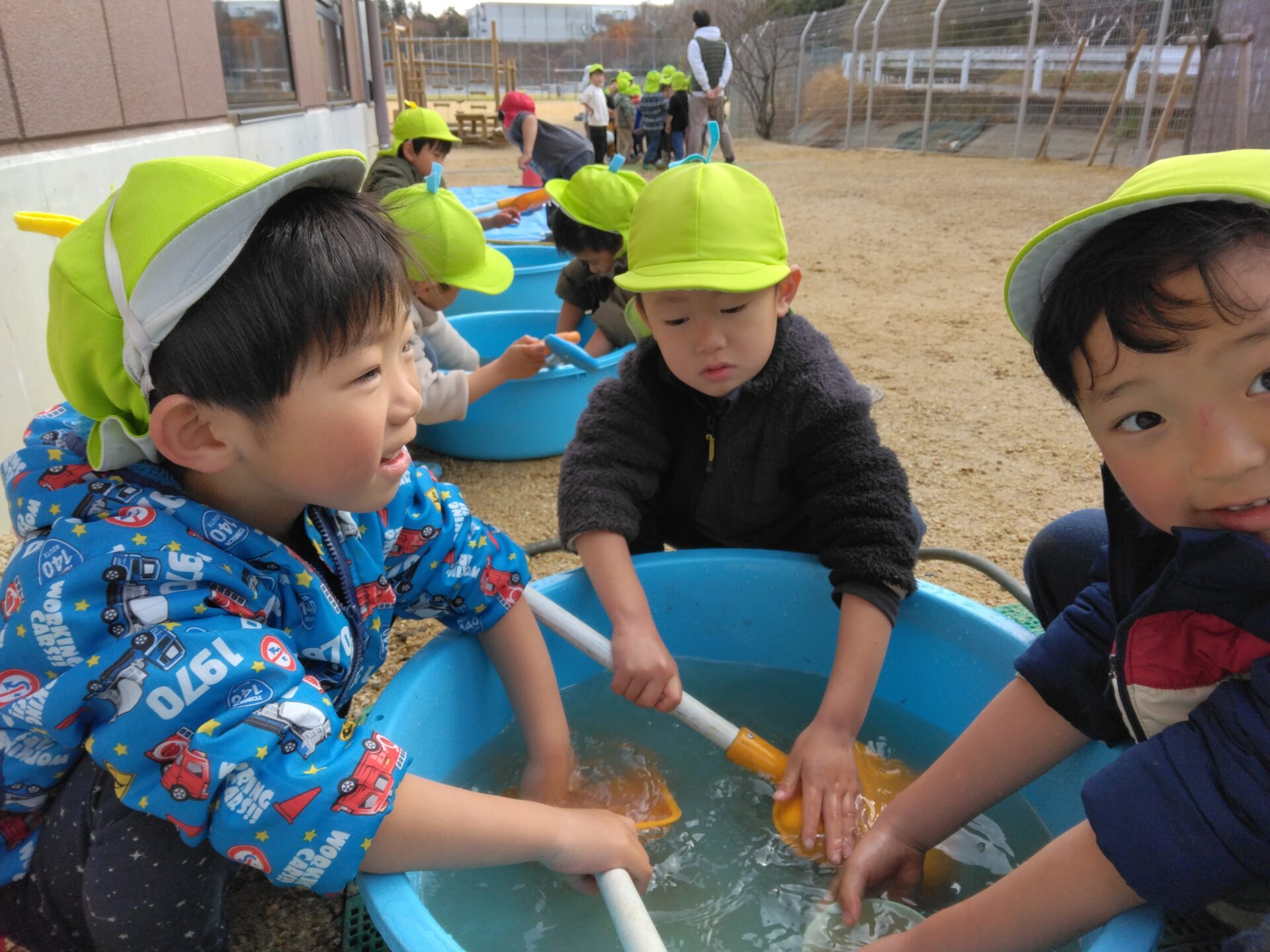 「先生〜、もっと洗うの無いの?」と、水遊び感覚で楽しむ子どもたち。ぬるま湯効果もあったのかな?