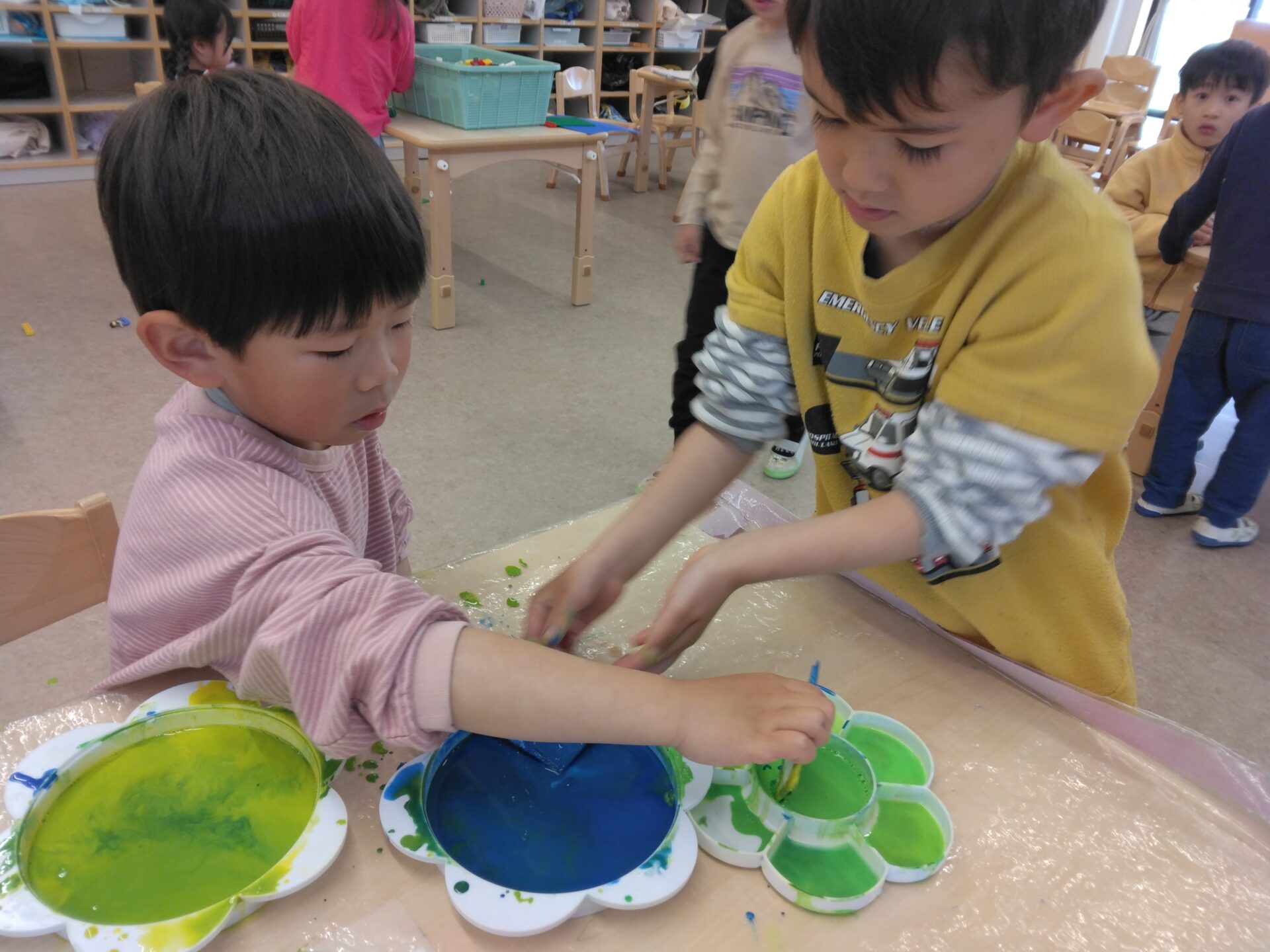5歳児 つきくじらチーム「染め紙遊び!大変身🎏」