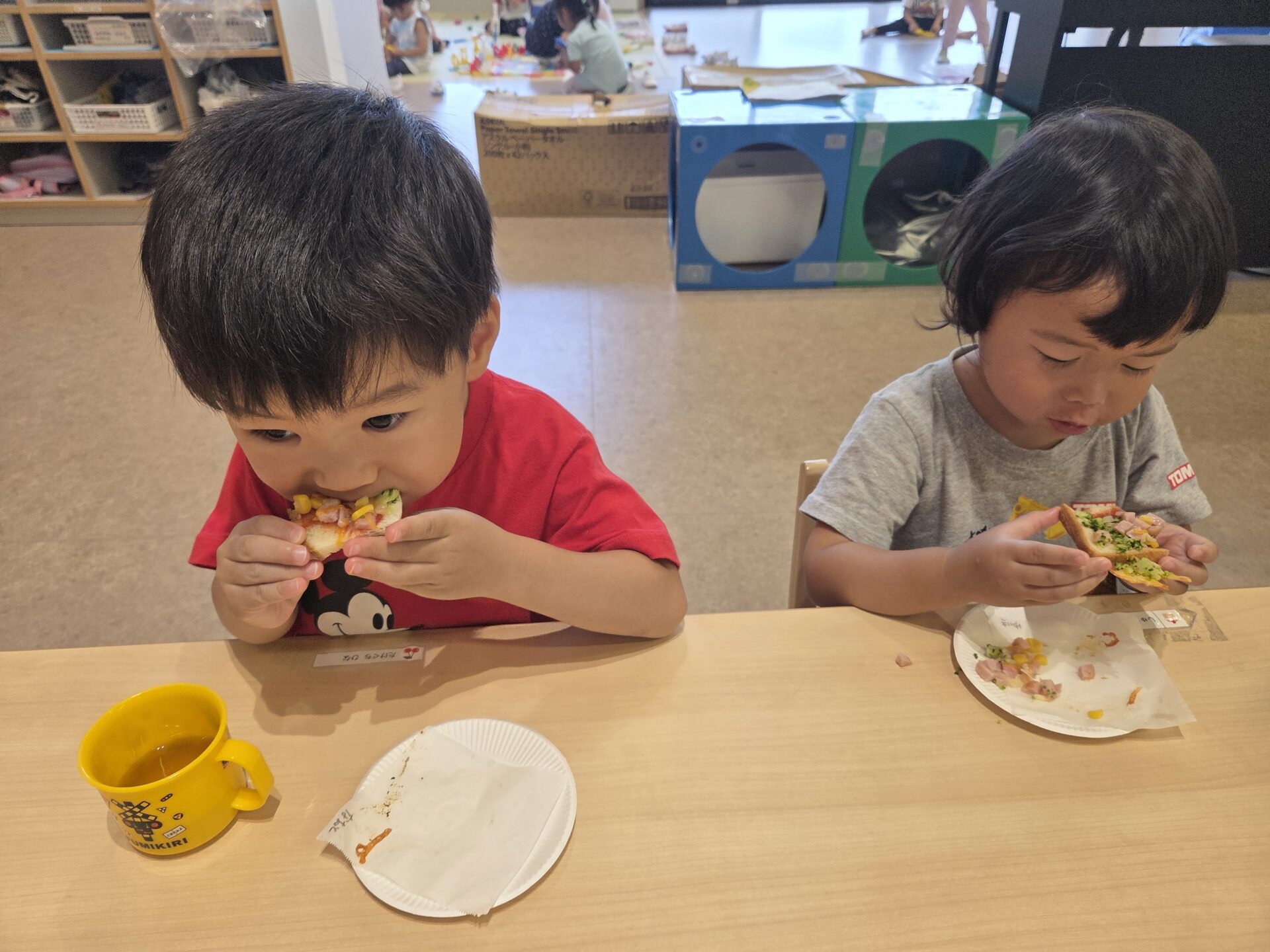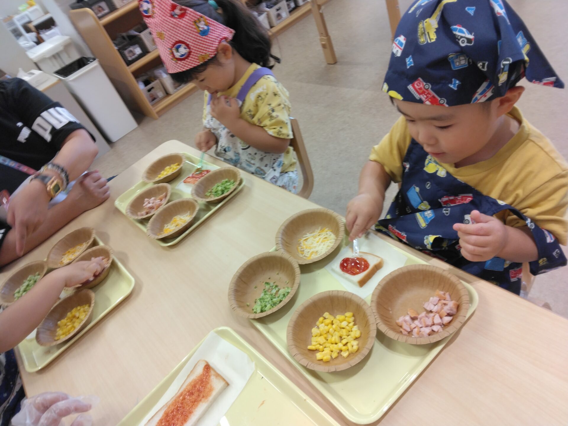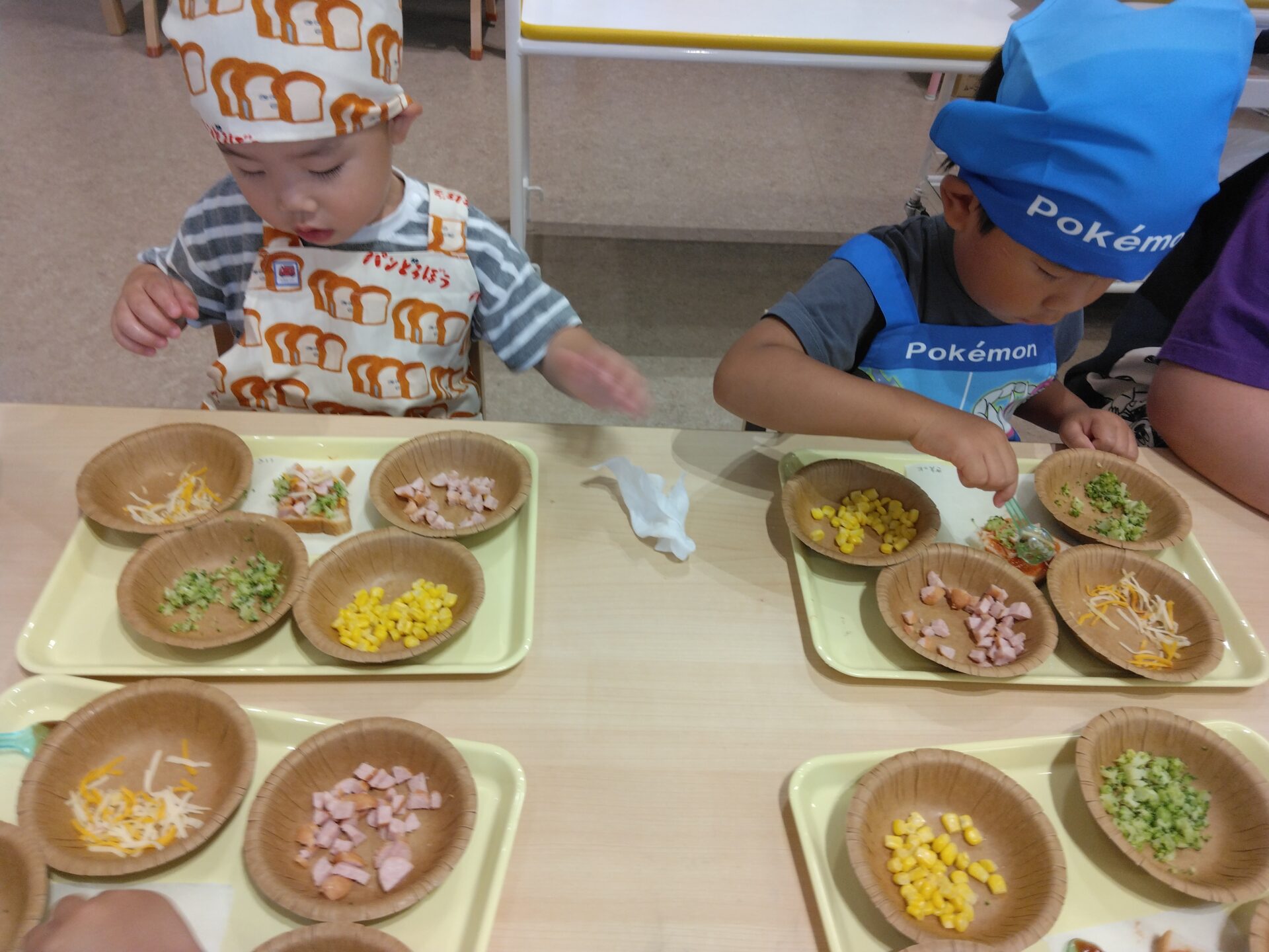 3歳児 にじ・かぜチーム 「初めてのクッキング!ピザパーティー」