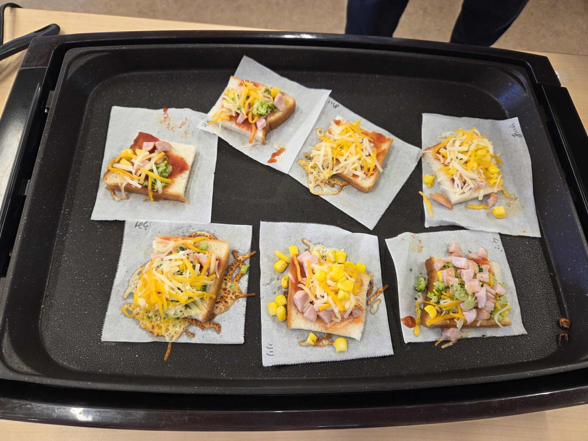 ウインナーを並べたり、コーンを山盛りにしたり…