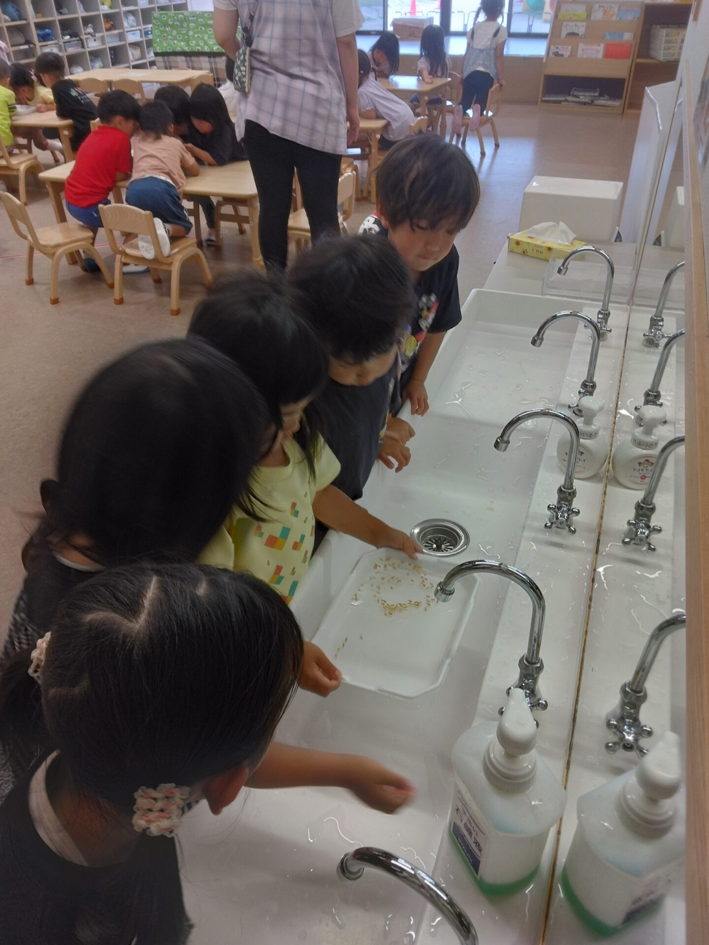 登園すると、子どもたちは真っ先にお米に変化がないか、観察!