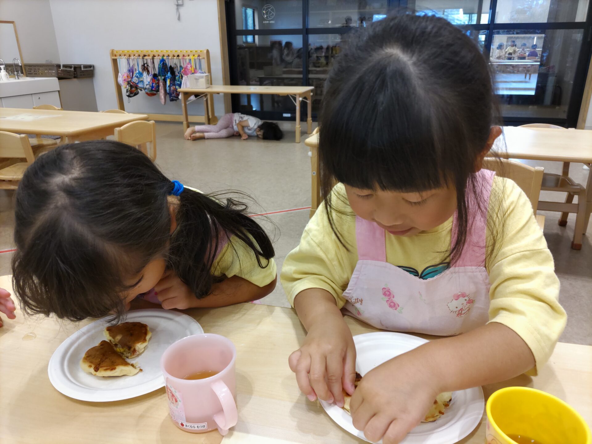 部屋中に、ホットケーキが焼けるいい匂いが 広がります…