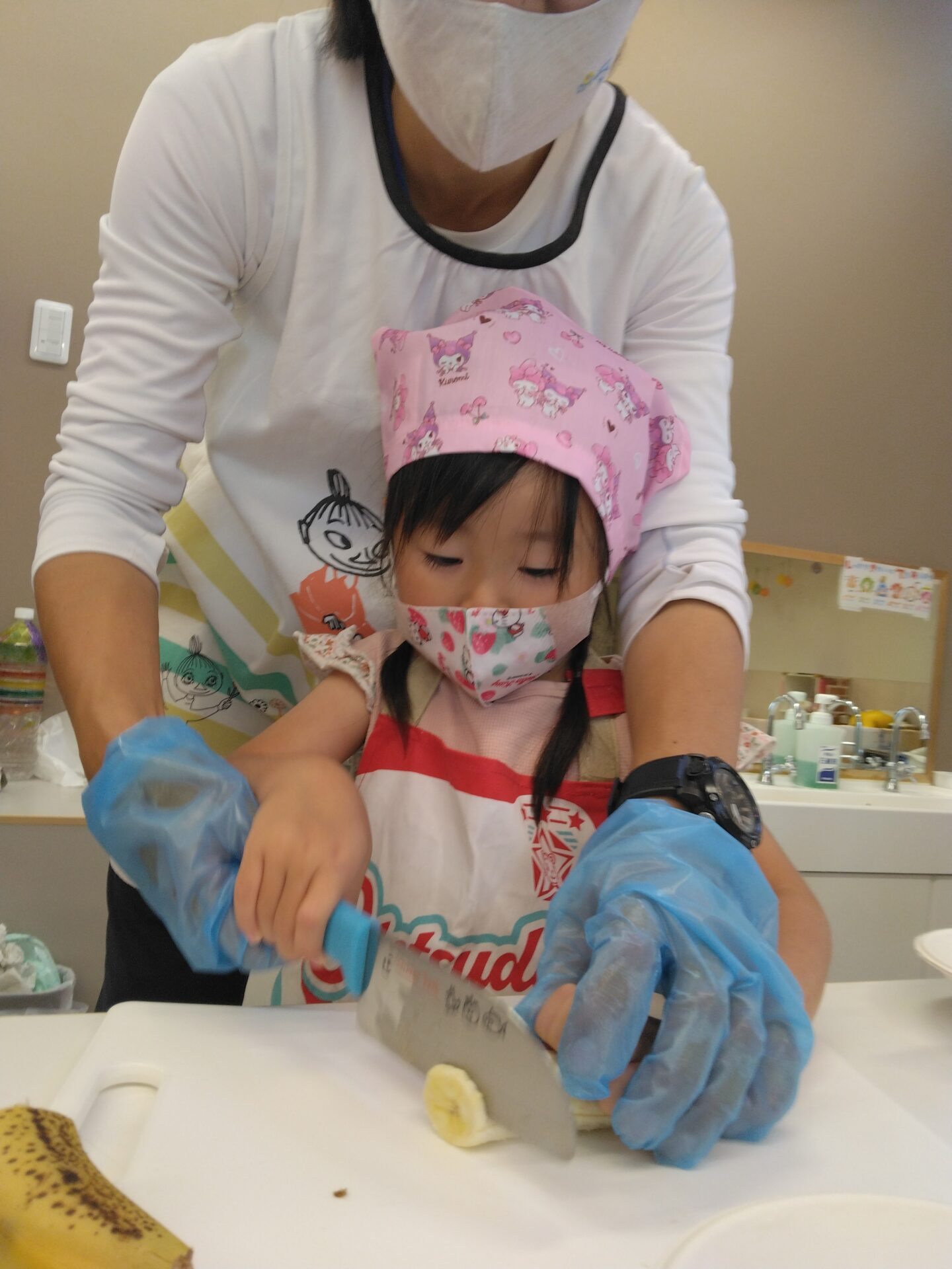 今回、くじらチームは初めて包丁を使ってクッキングをしました。