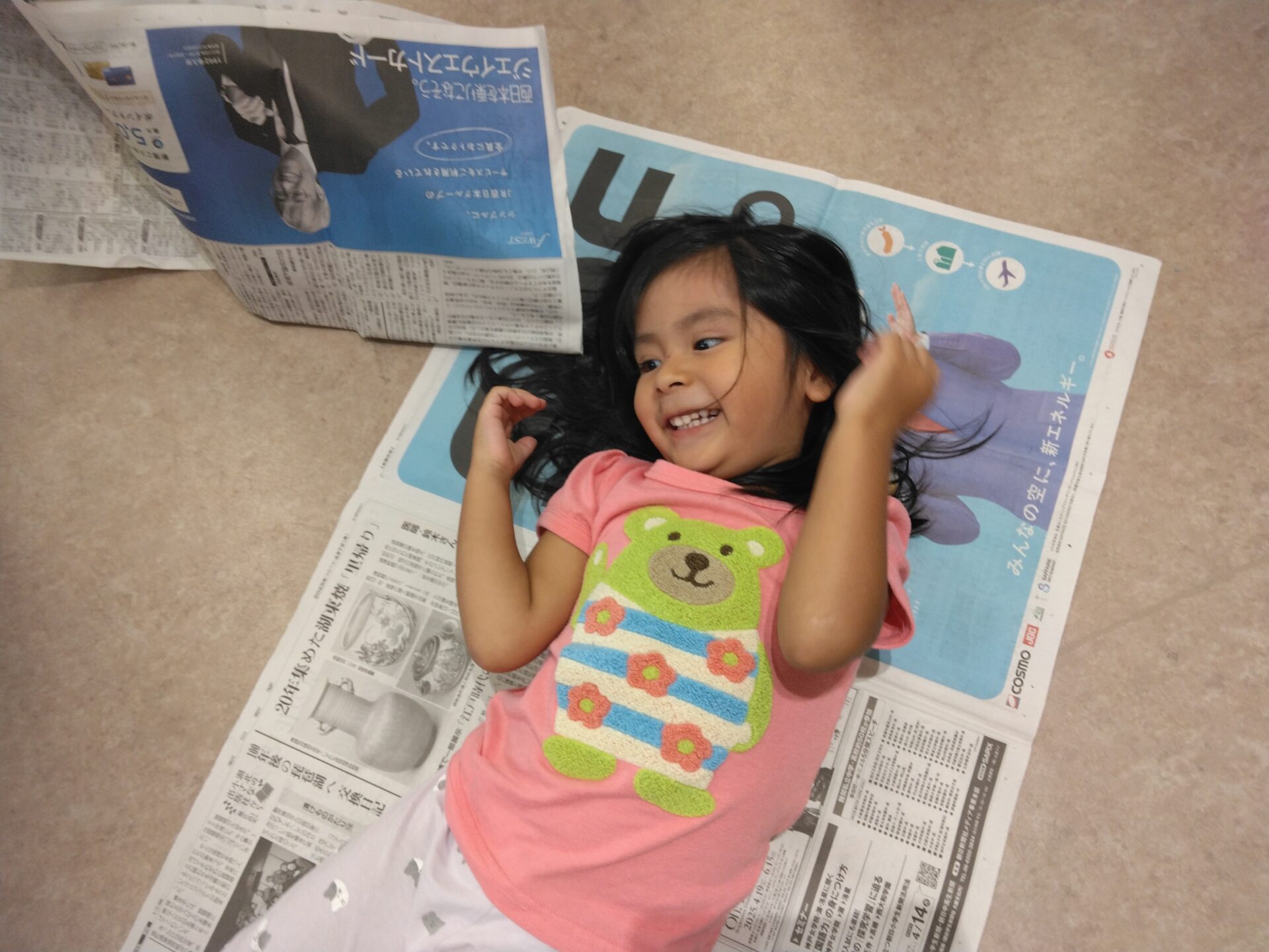 「私に布団をかけてー」と、新聞紙が布団に変身! !