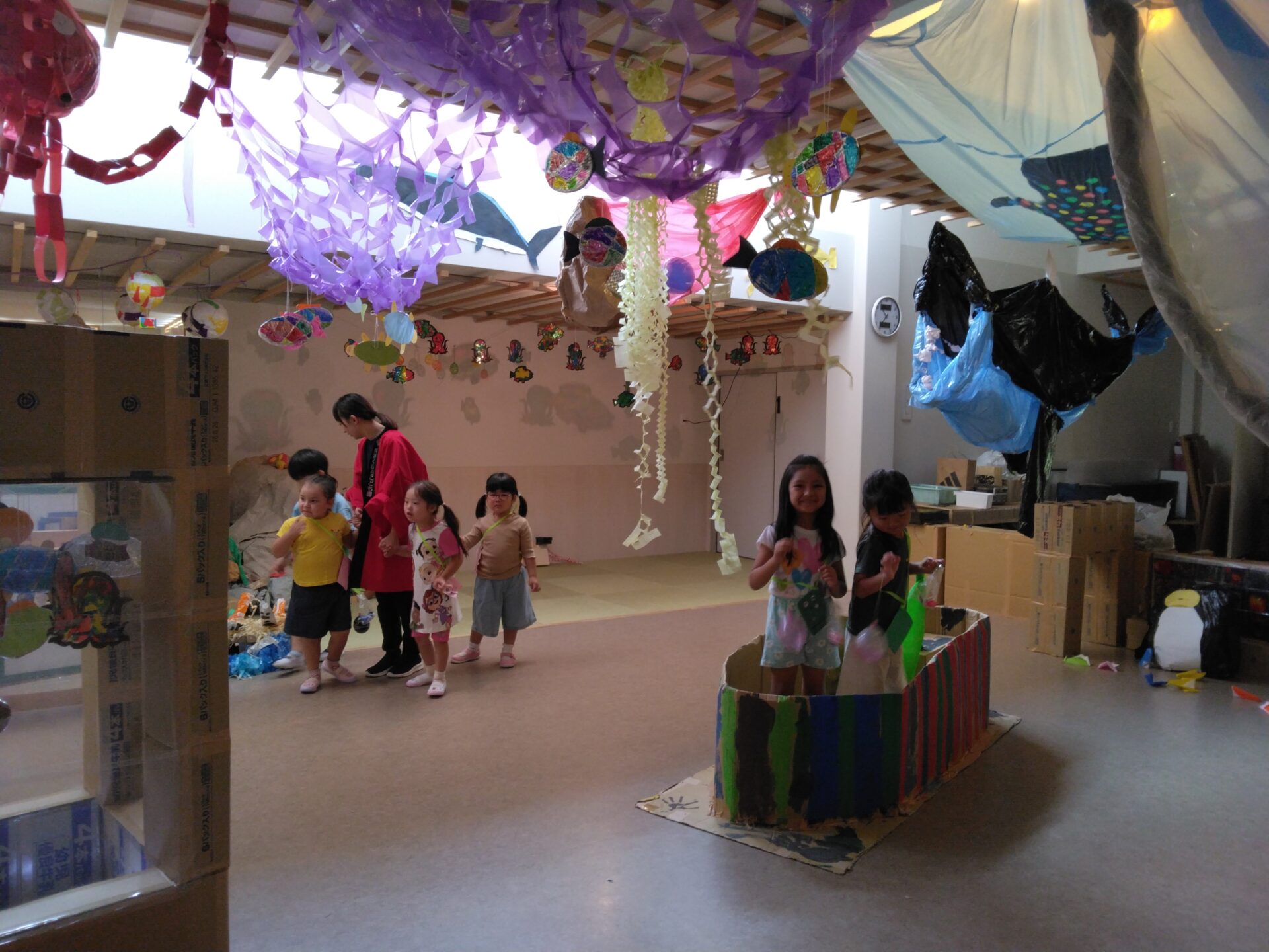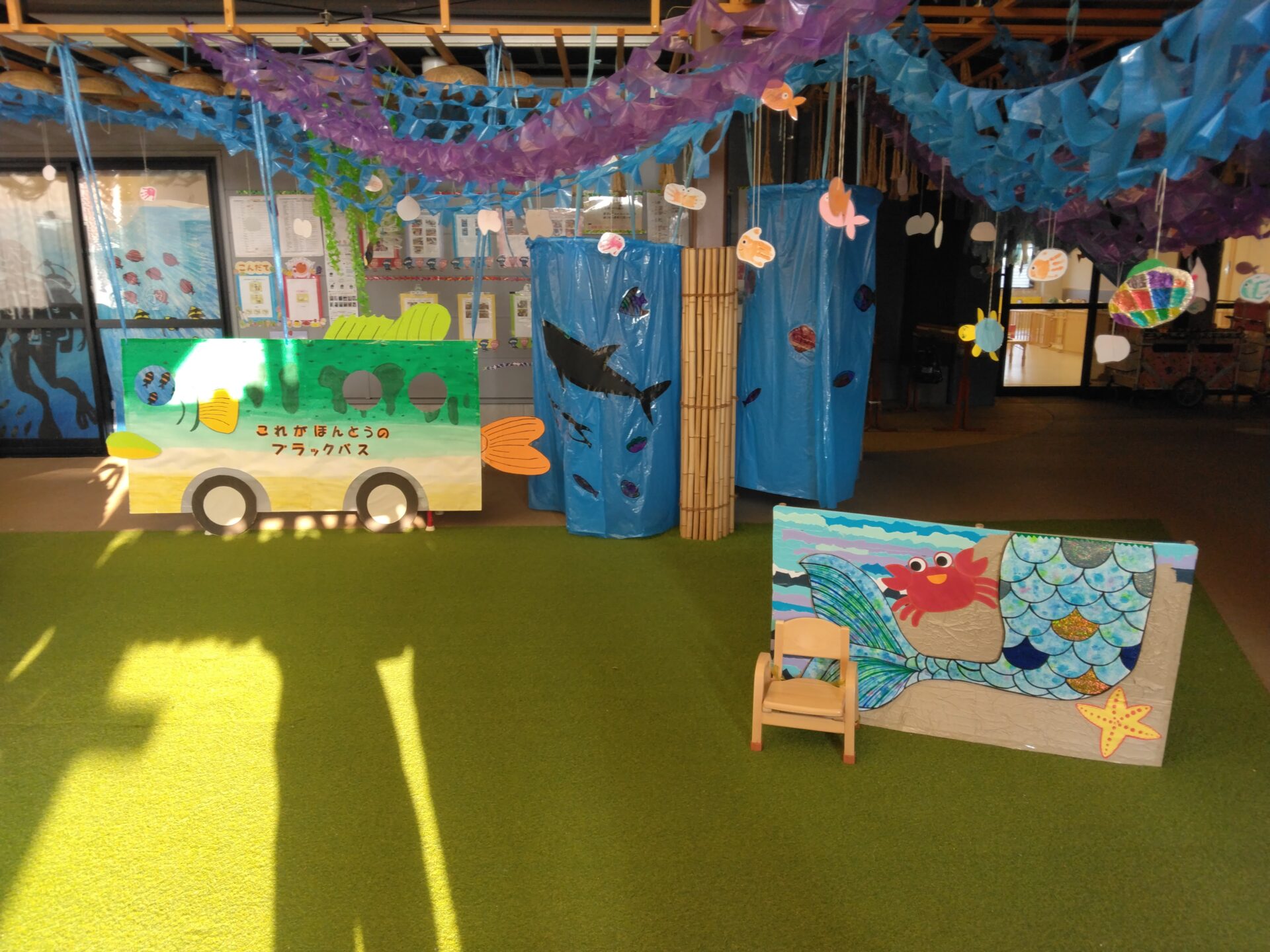 去年のサマーフェスティバルでは、くじらチームの友だちが自分たちの部屋を『海の世界』に✨