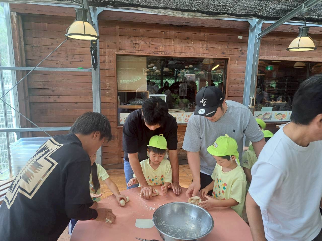 いろいろなアドバイスをもらったり、手を添えパン生地を一緒に捏ねてもらったり!