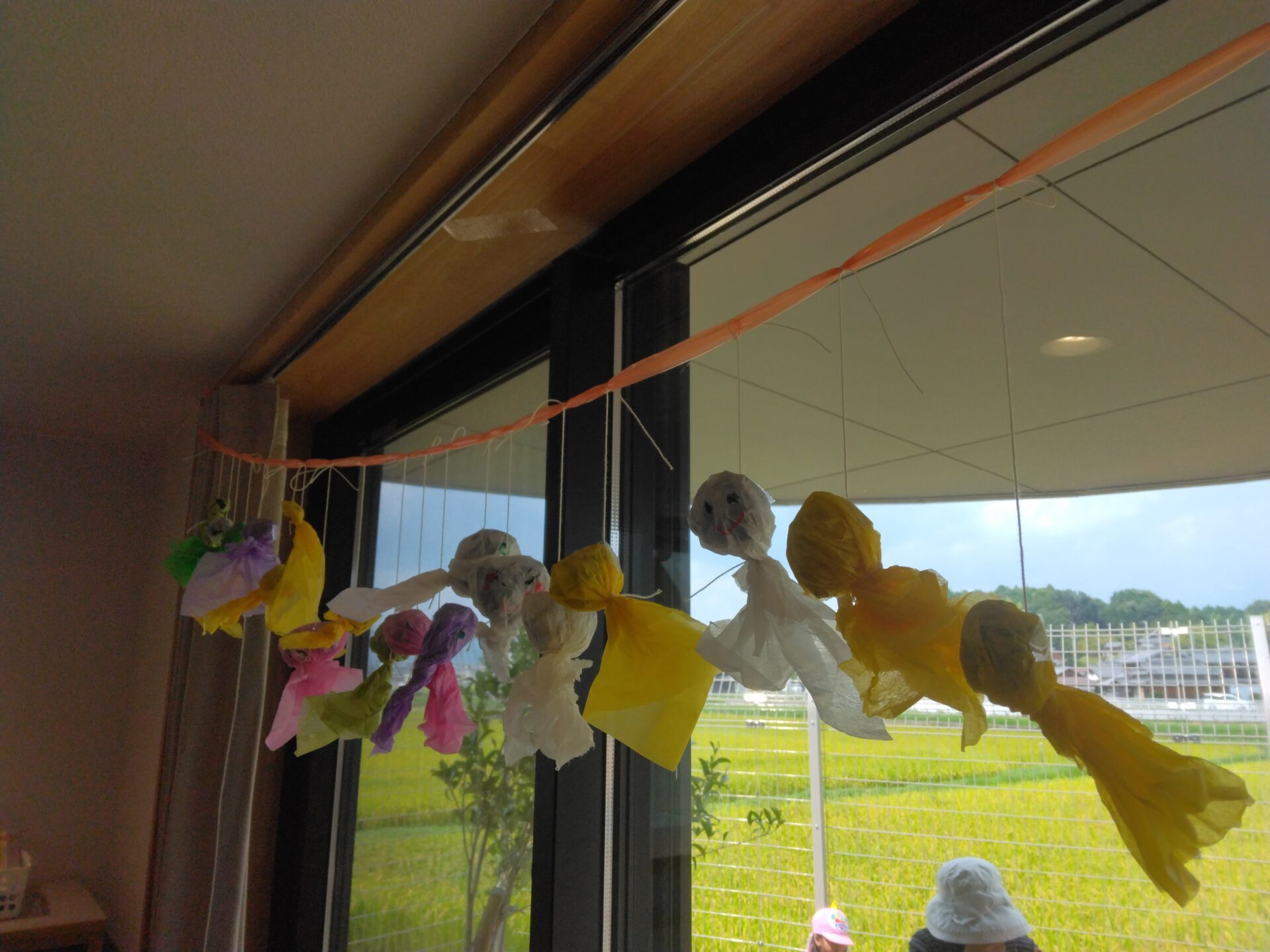当日いい天気になりますように…という思いを込めて、てるてる坊主を作りました。