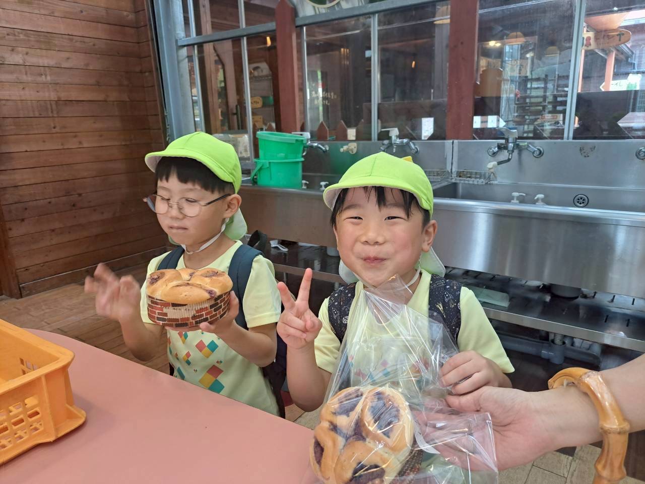 おいしそうに焼きあがったパンの香りに大満足の子どもたち✨