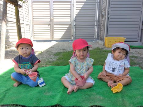 0歳児 うみチーム ミニ園庭で遊んだよ