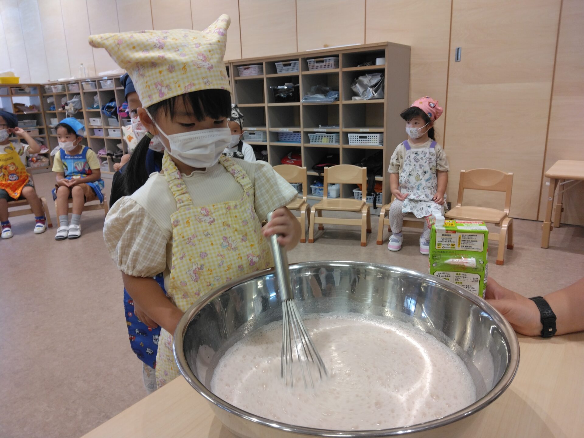 「早くフルーチェ作りたーい」と朝から楽しみにしていた子どもたち。