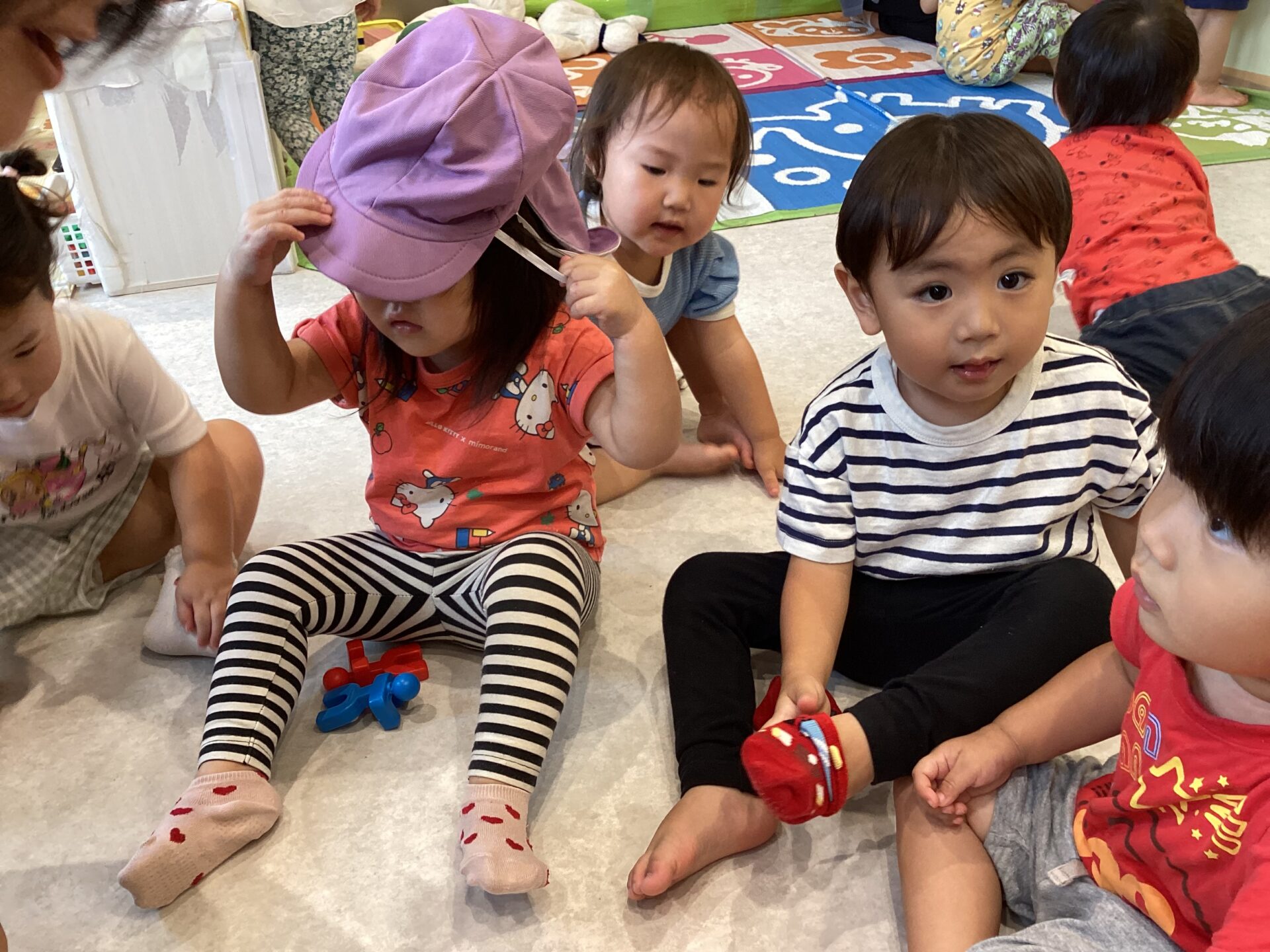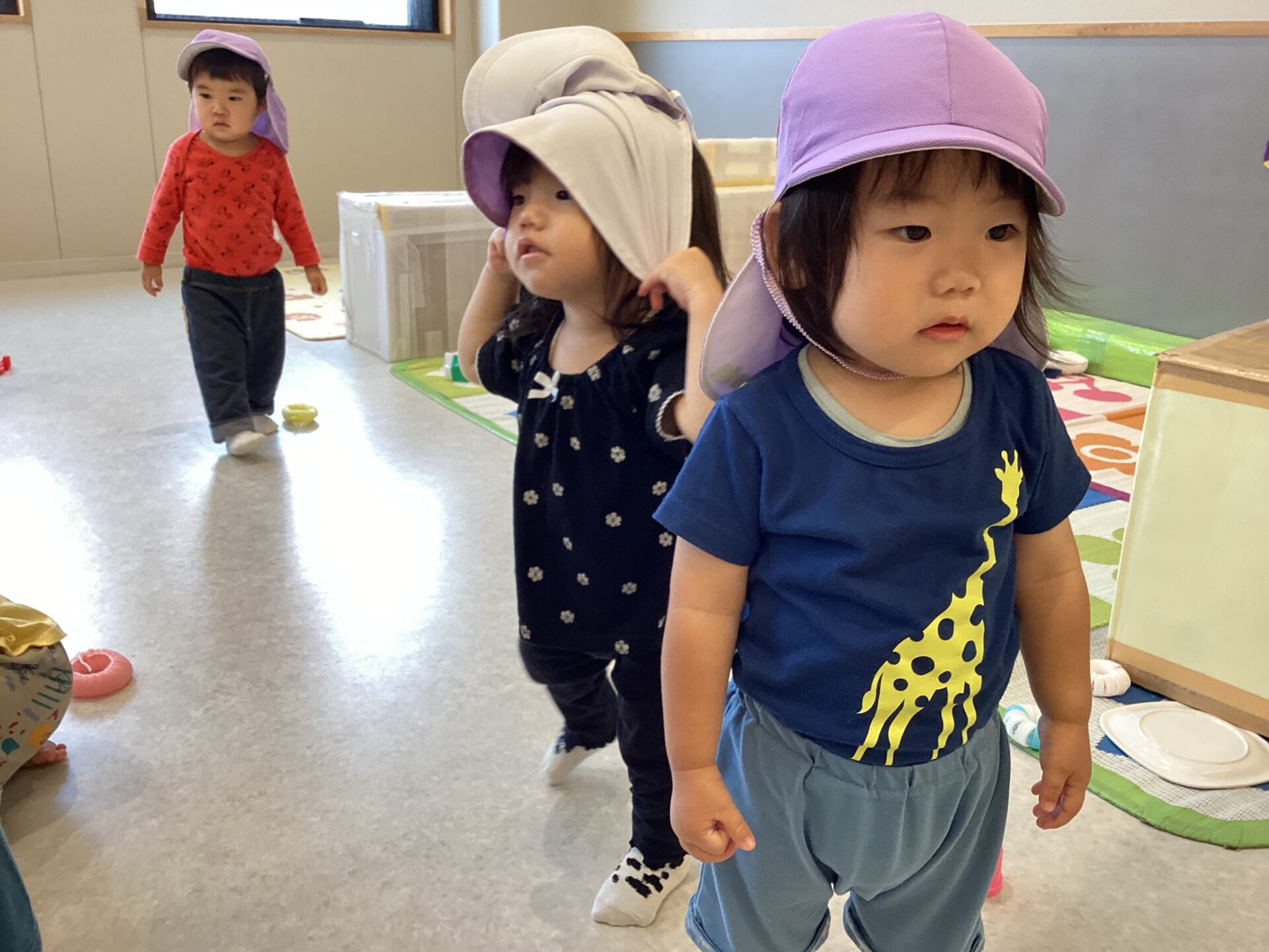 靴下や靴、帽子を自分で履いたり被ろうとする姿があります。