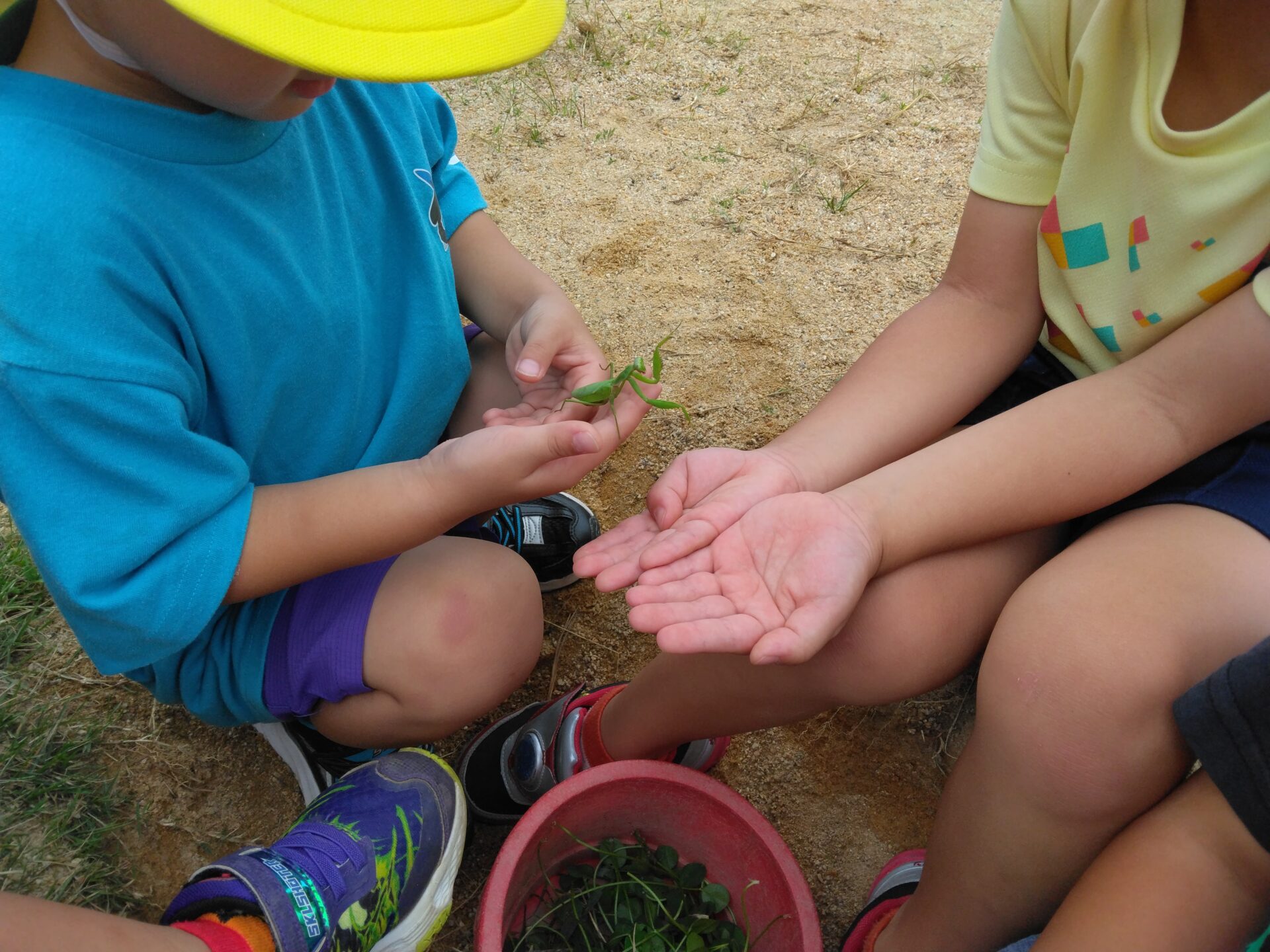 カマキリ、バッタ、ダンゴムシなどなど、友だちと一緒にゲット!