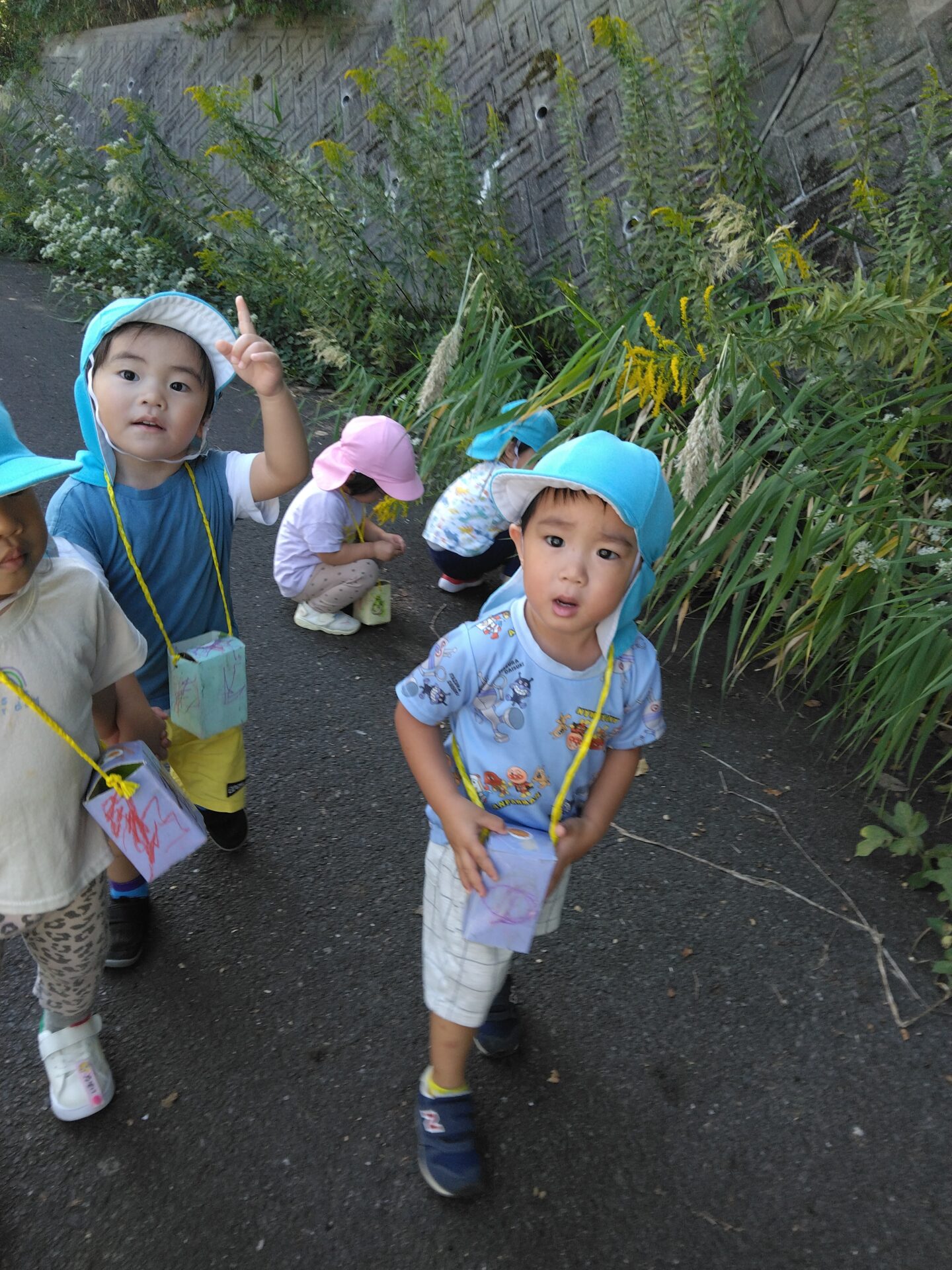 いつもより少し遠い、園舎裏の遊歩道まで歩くと・・・