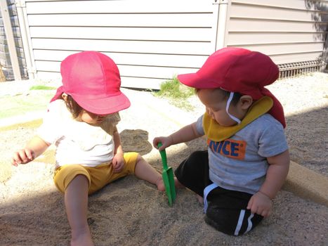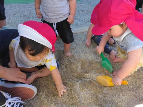 砂の感触が苦手な子もいましたが、スコップを持ちカップに上手に砂を入れる姿や、砂をニギニギと感触を楽しむ姿が見られました。