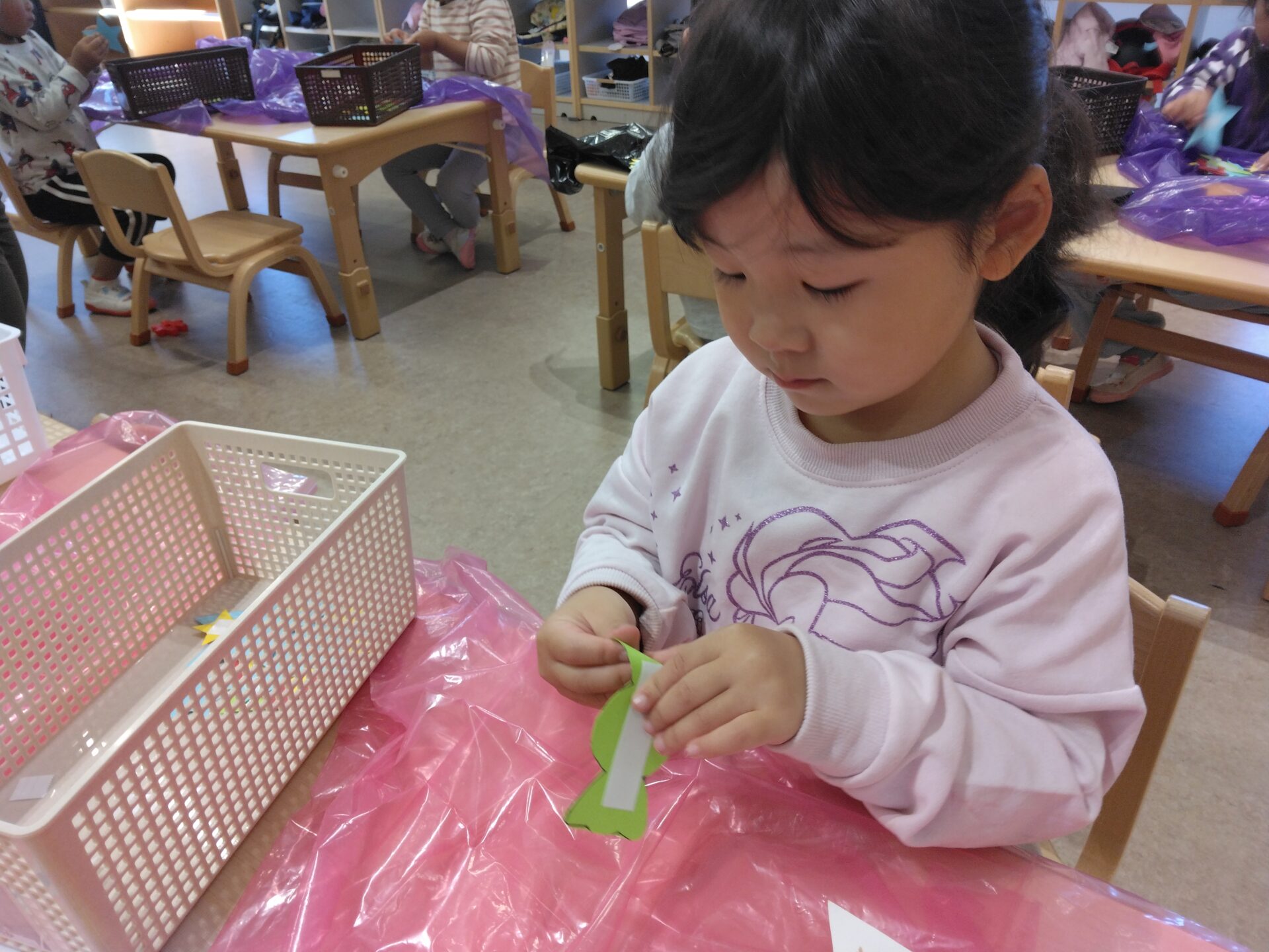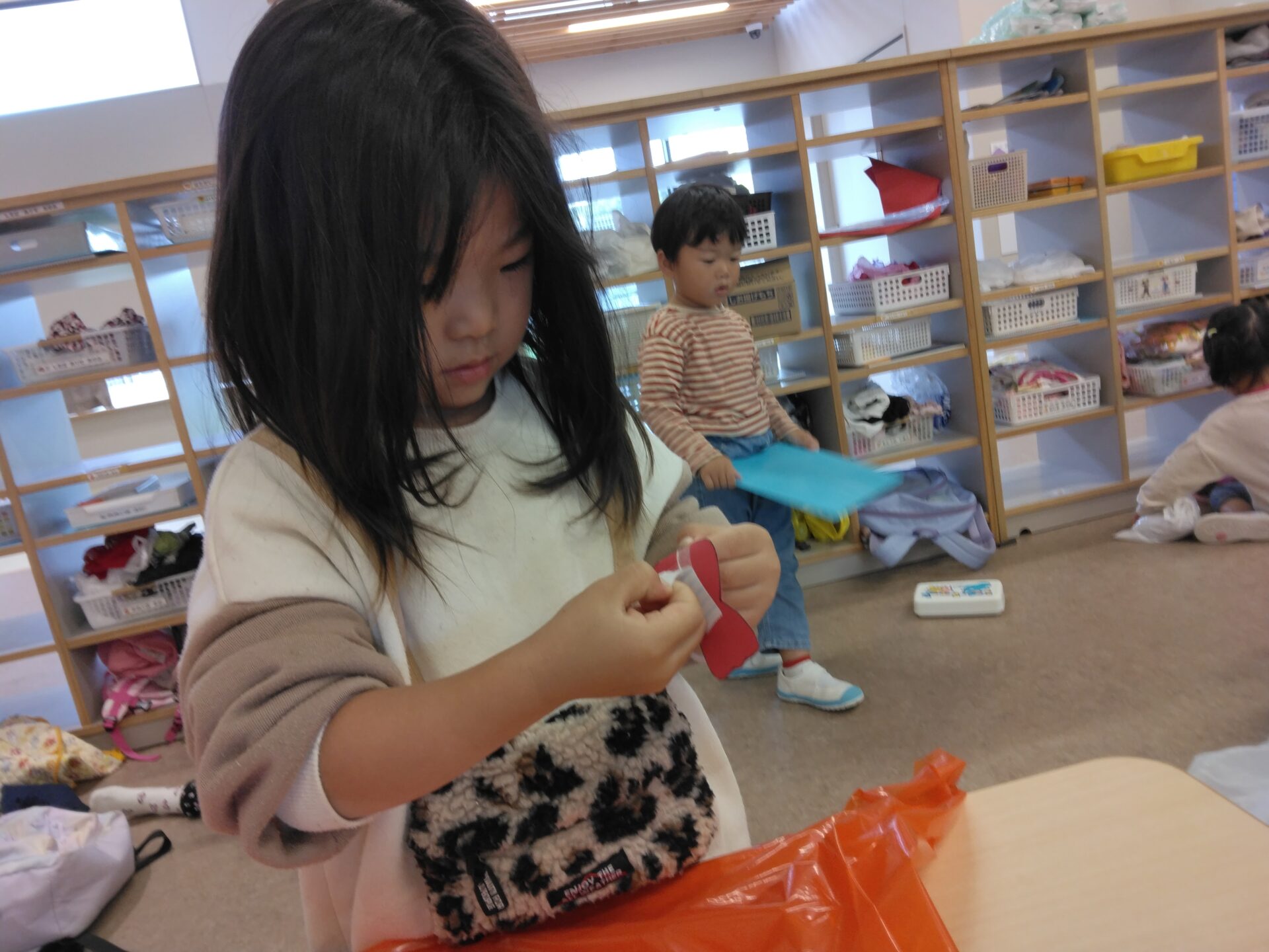 「私は可愛い赤にしよう」と、集中して作っていました。