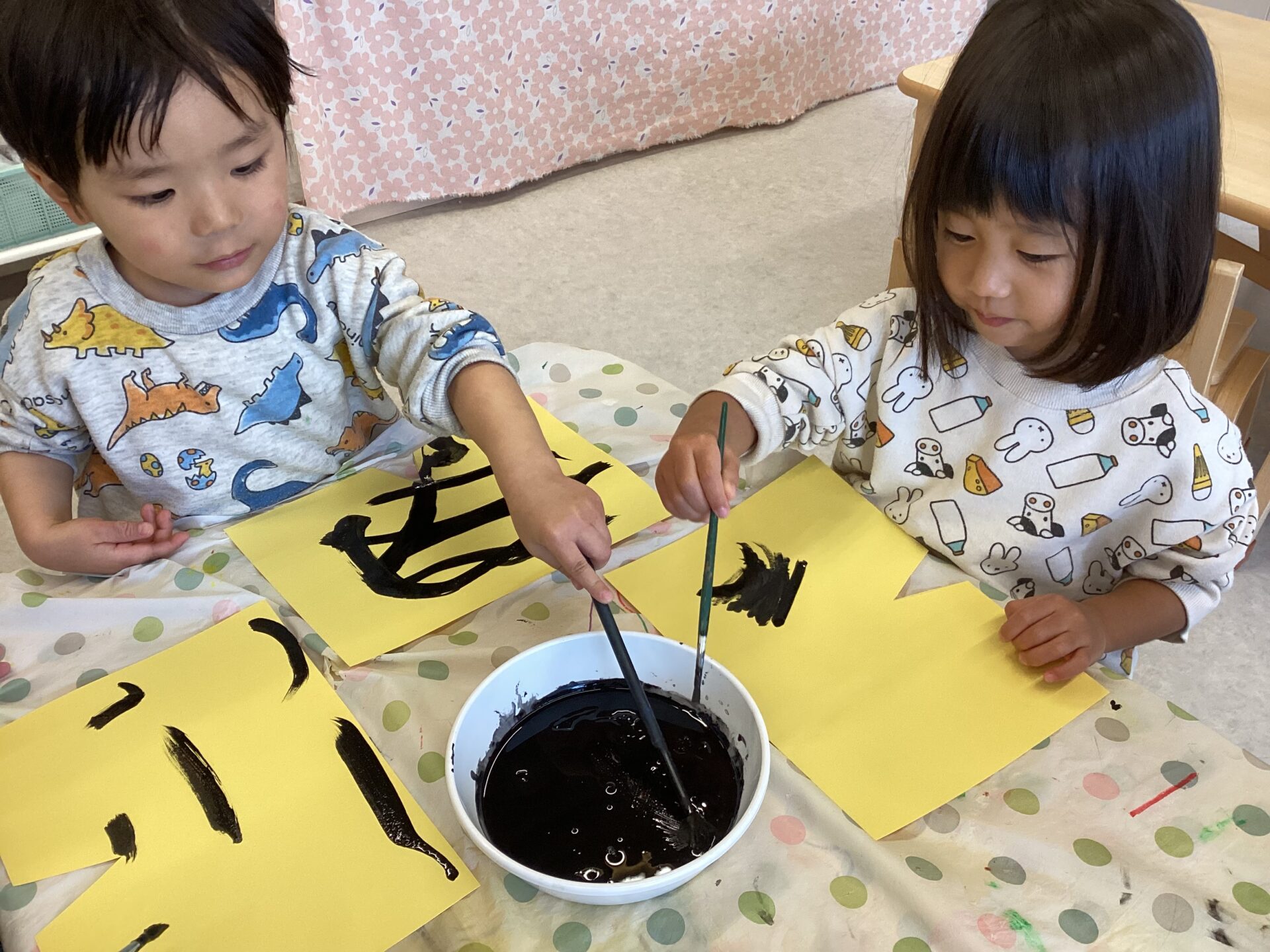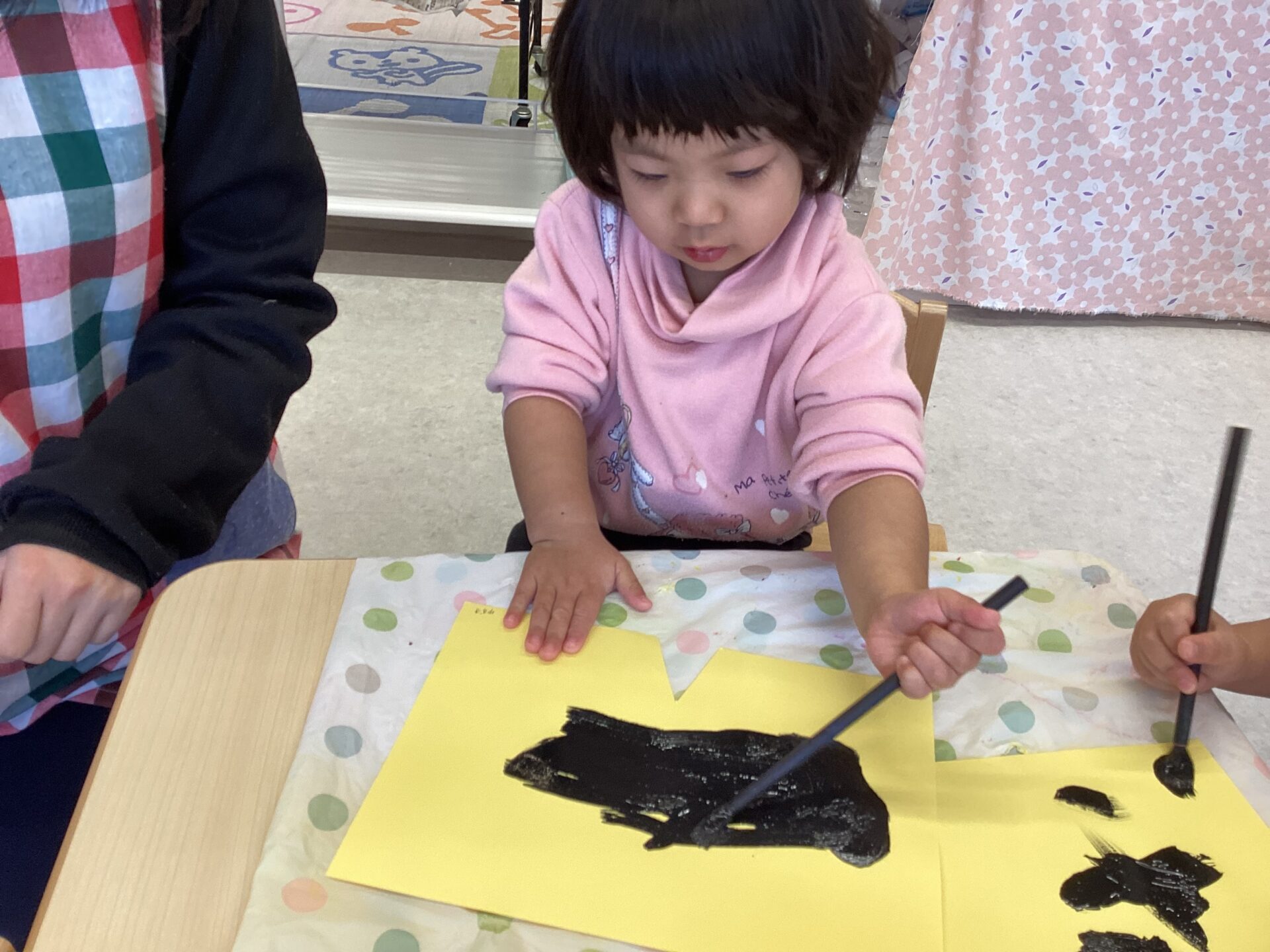 慎重にゆっくり線を描く子や大胆に線を描く子と
