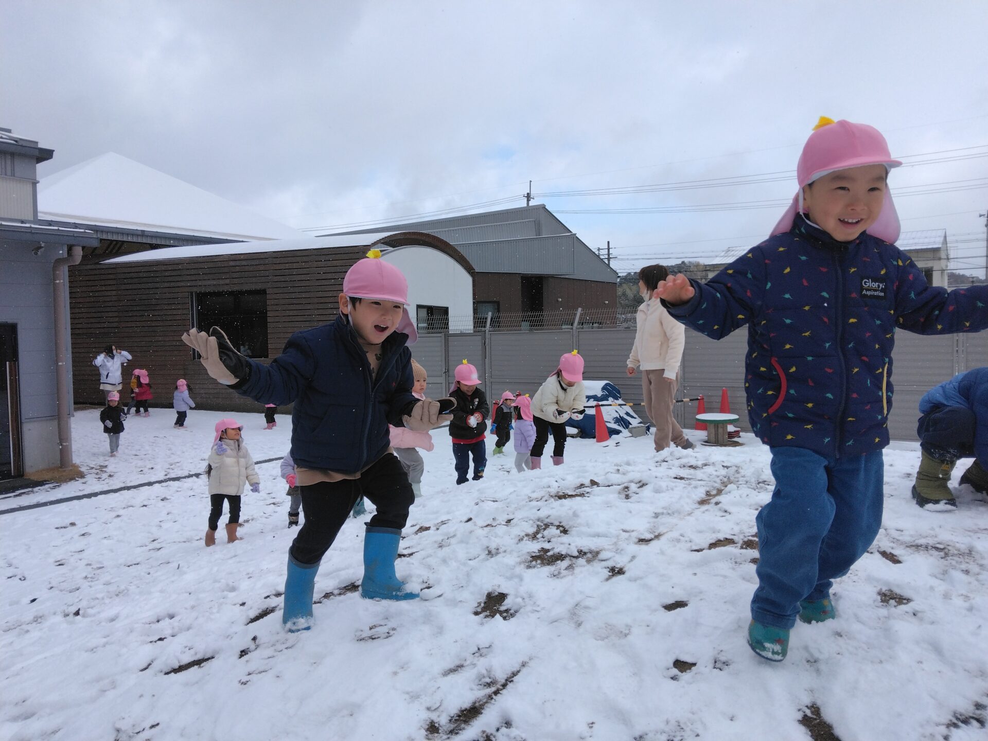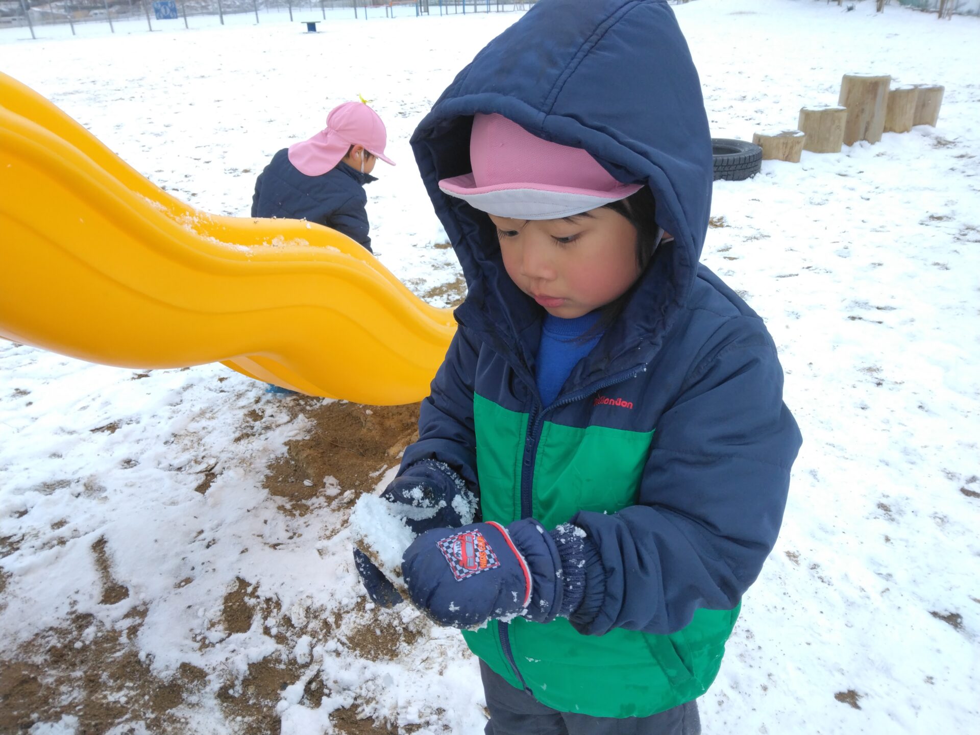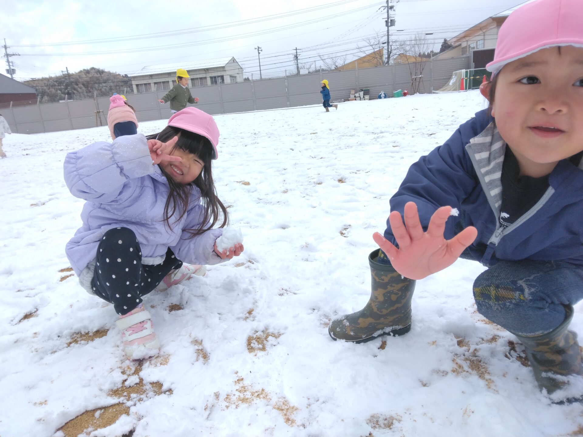 待ちに待った雪遊び、子どもたちは喜んで園庭で遊びました。