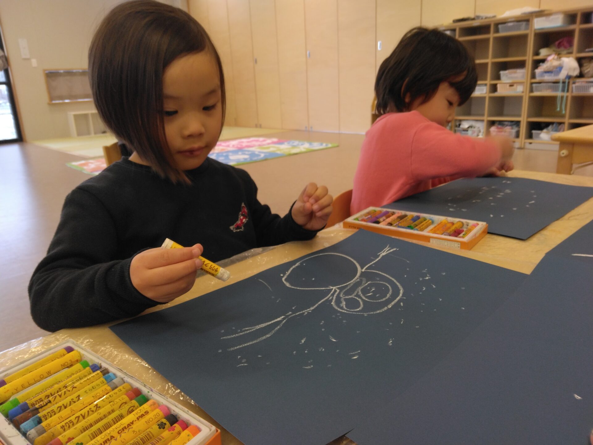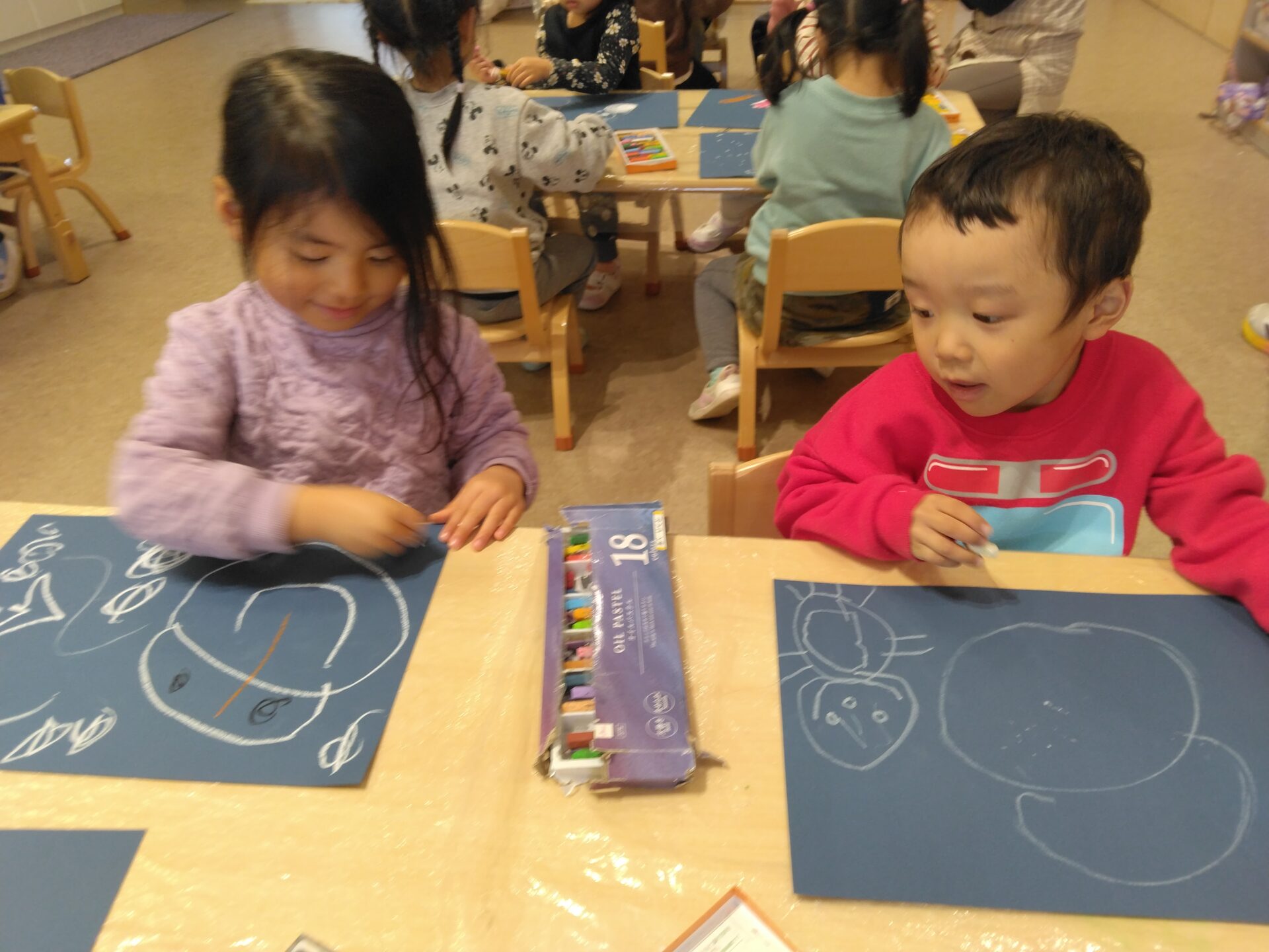 「また次は大きい雪だるま作りたいな!」と絵を描きながら楽しそうに子どもたち♡