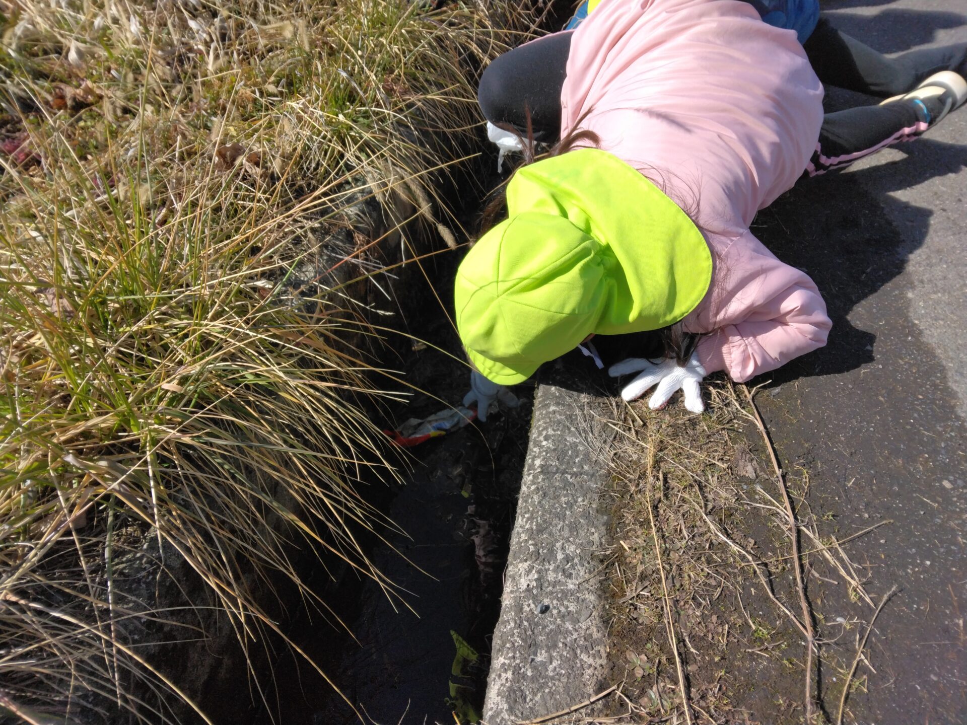 「溝には?ゴミが落ちてないかな?」と覗いてみたり…