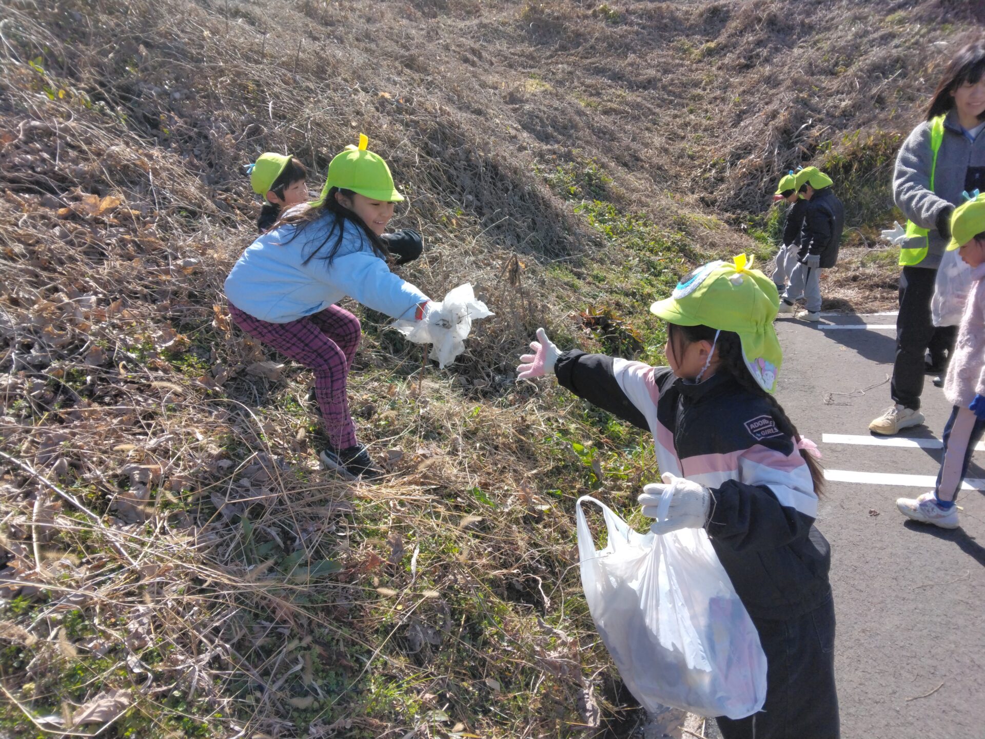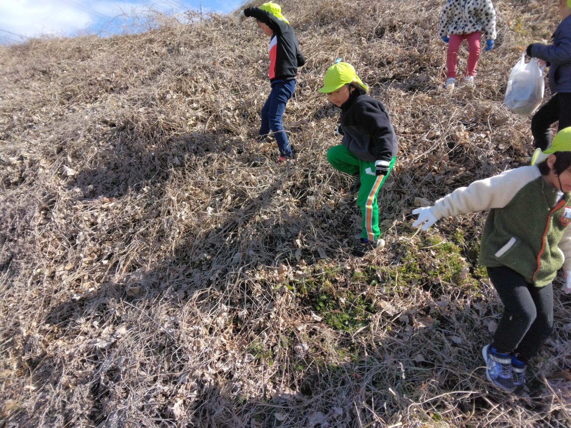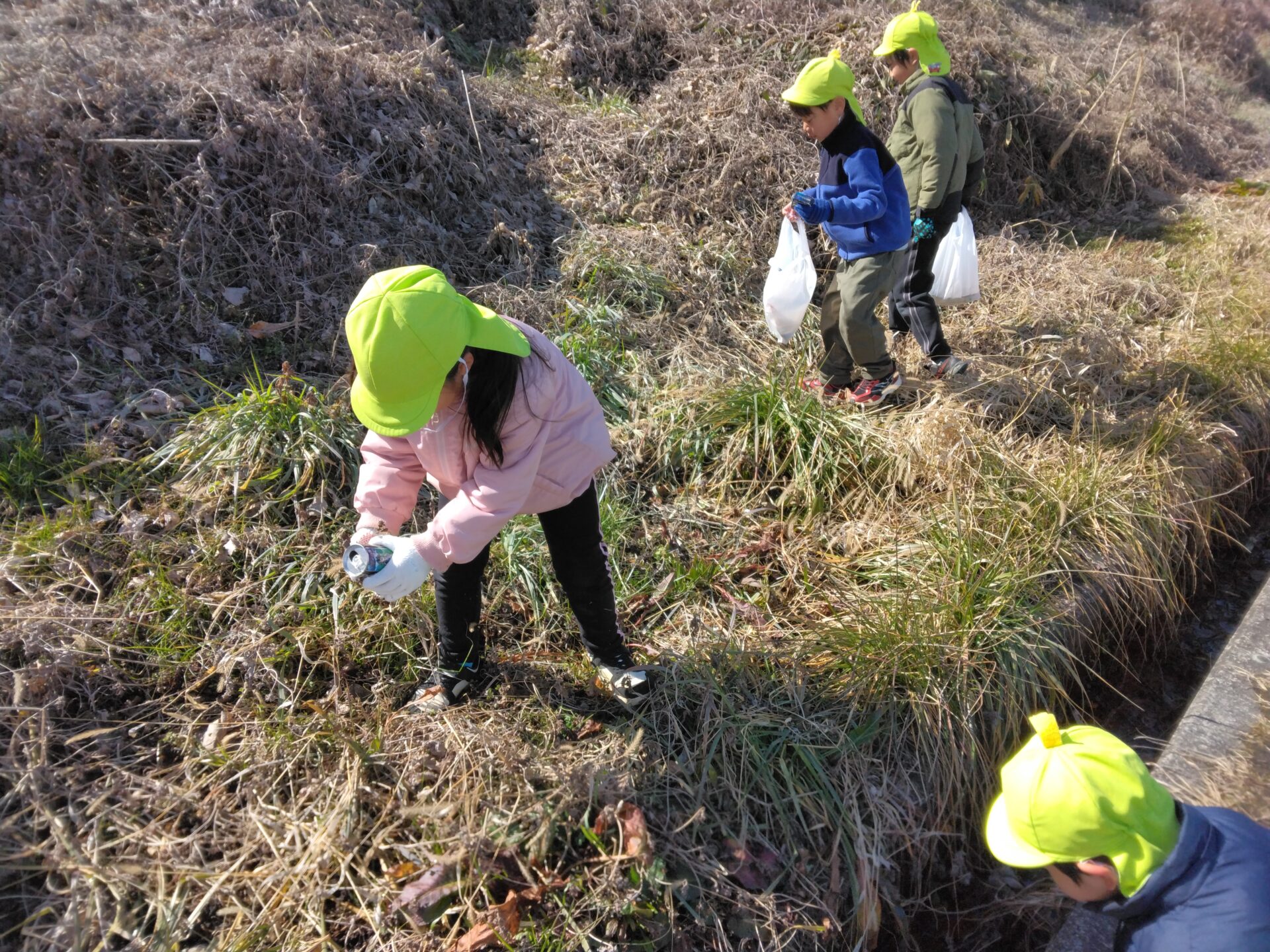 「こんなところにも、缶があるー」と隠れていたゴミを発見したり…