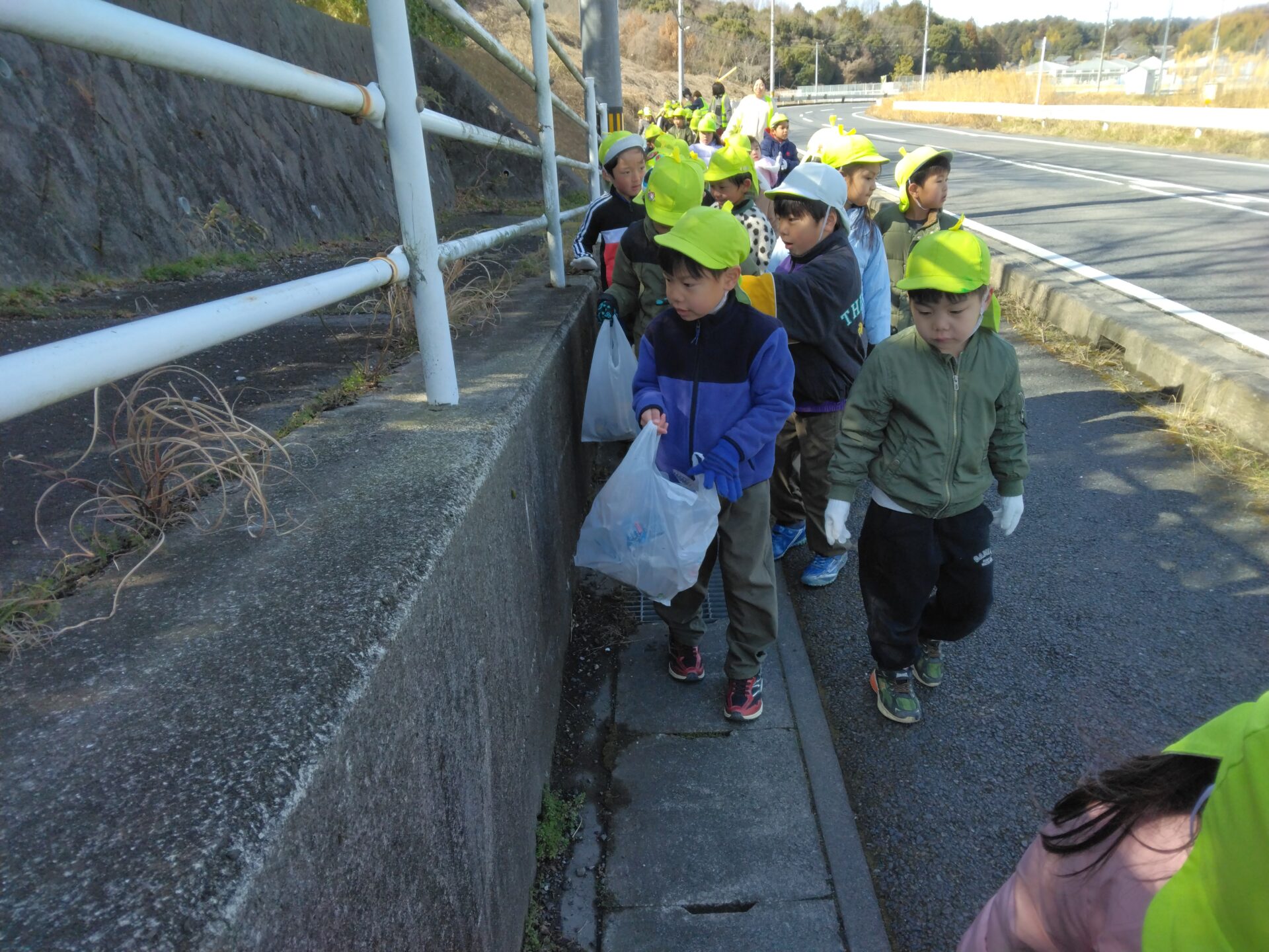 「さぁ~ゴミ拾うぞ!」とゴミ袋を片手に、張り切って園を出発!